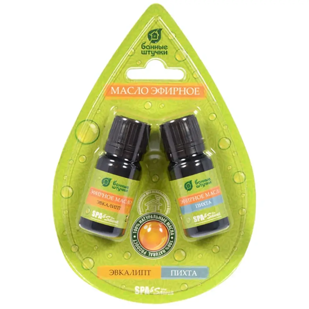 Набор эфирных масел «Банные штучки», эвкалипт и пихта, 2 флакона по 10 мл, каплевидная упаковка