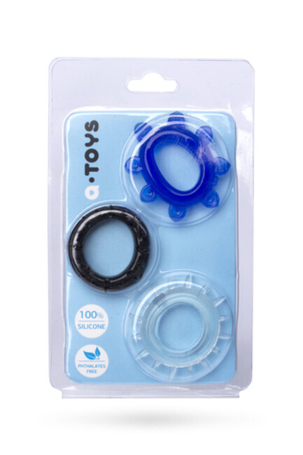 Набор эрекционных колец "A-Toys", 3 шт, силикон, черный/синий/прозрачный
