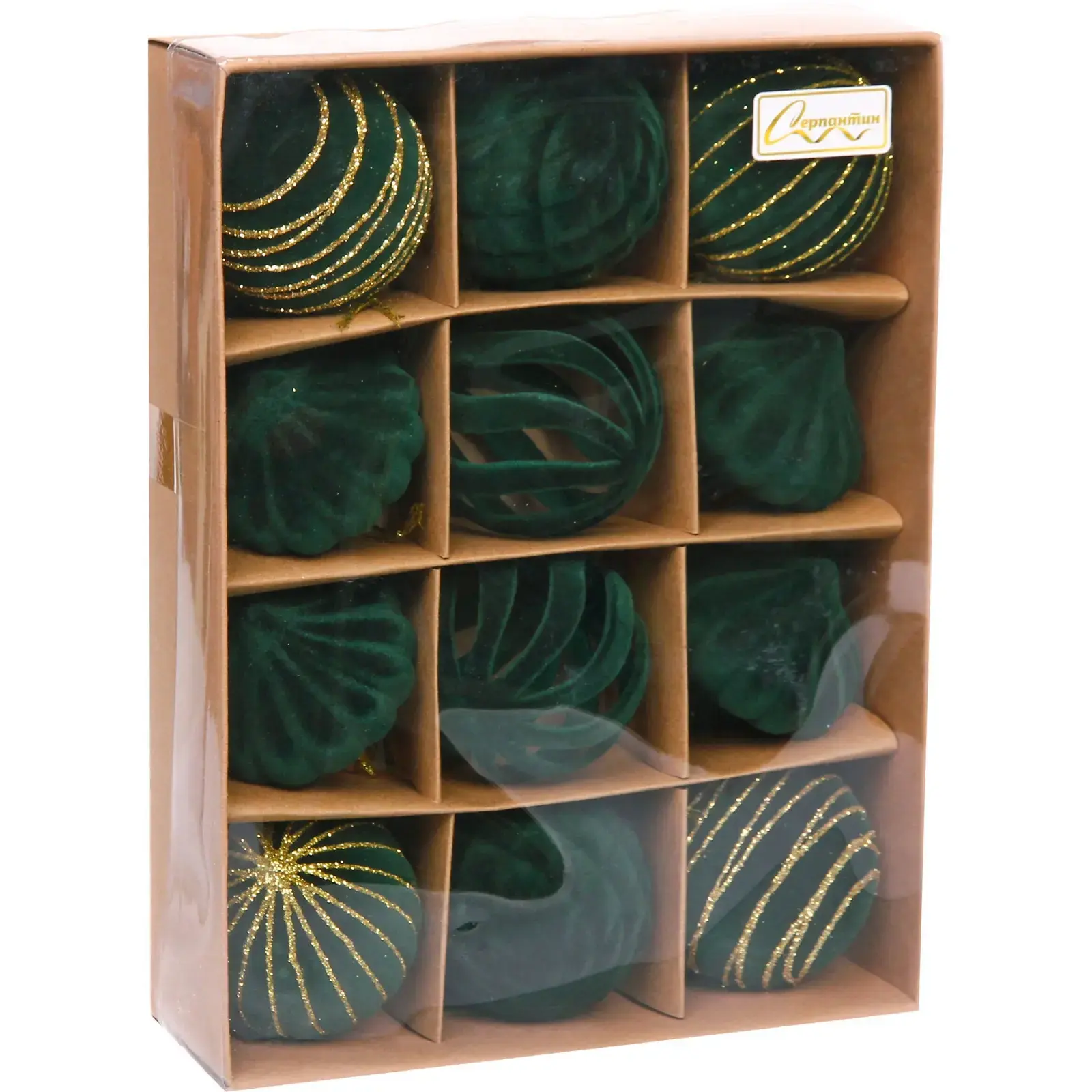 Набор елочных украшений VELOUR «Восточная ночь» 6 см (набор 12 шт), Изумруд, пластик, для елки и декорирования