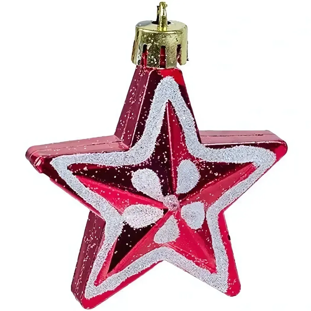 Новогодние игрушки "Звезда", 6 шт, 6см, прозрачный пластик с глиттером