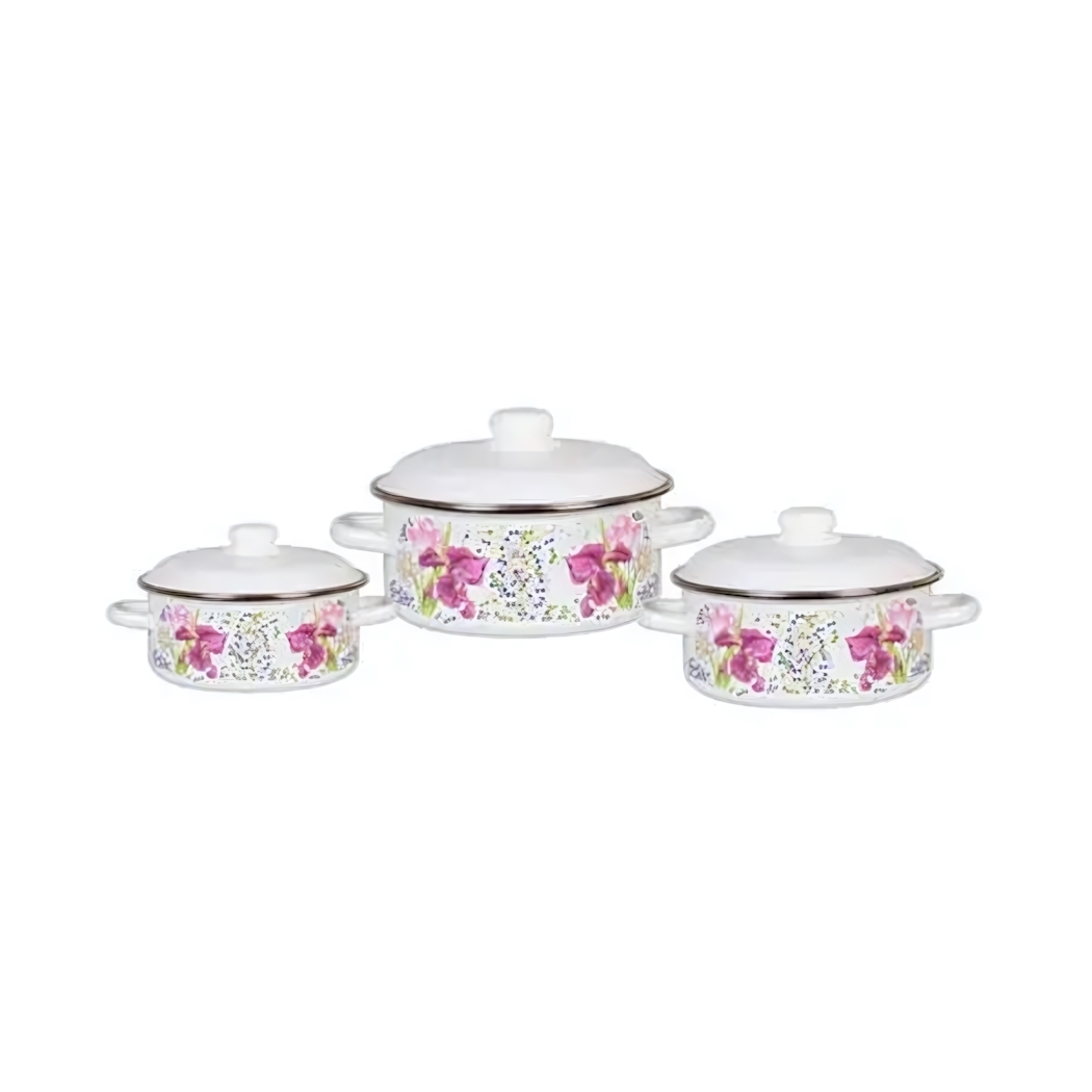 Набор кастрюль эмалированных 'Мозаика' 3 шт, объемы 3/5/8л, цветочный узор