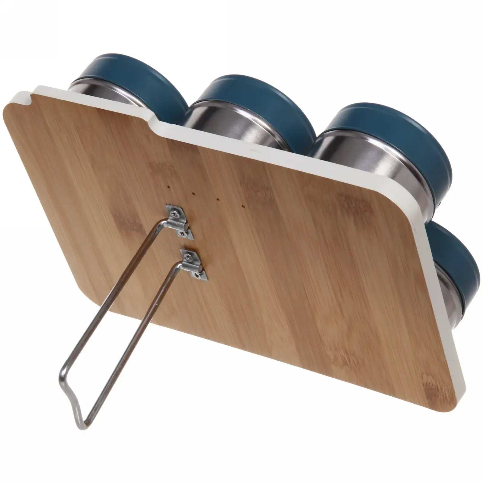 Размер каждого контейнера: диаметр 5 см, высота 7 см. Подставка обработана экологичным лаком, устойчивым к кухонным загрязнениям. Комплект полностью готов к использованию — просто заполните контейнеры любимыми специями и наслаждайтесь удобством системы хранения.