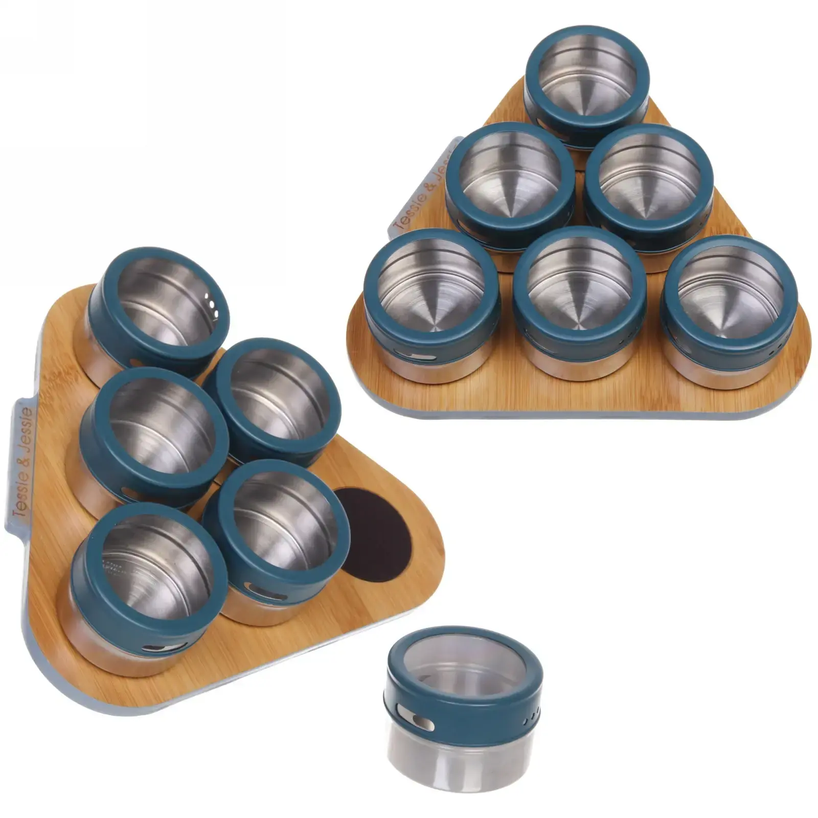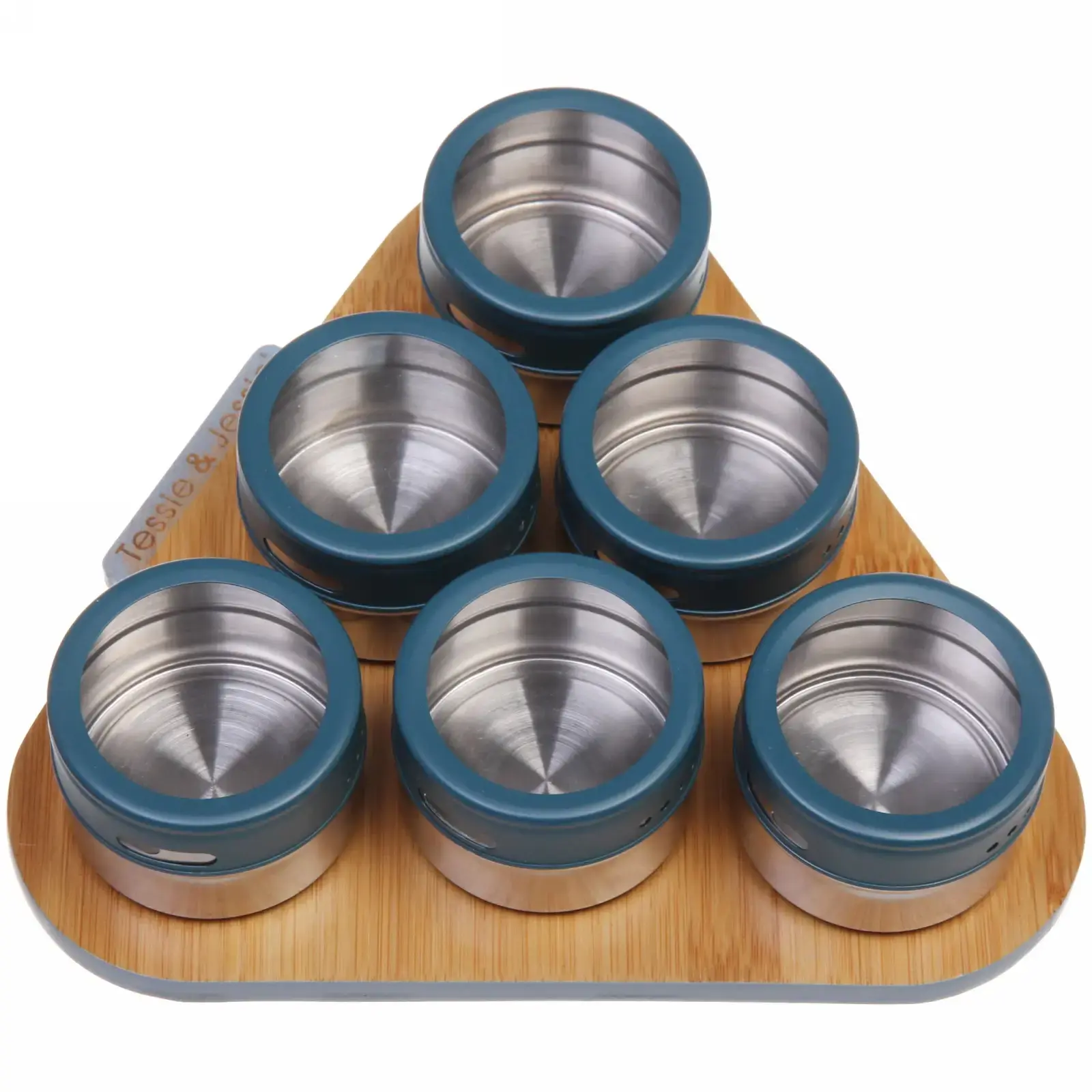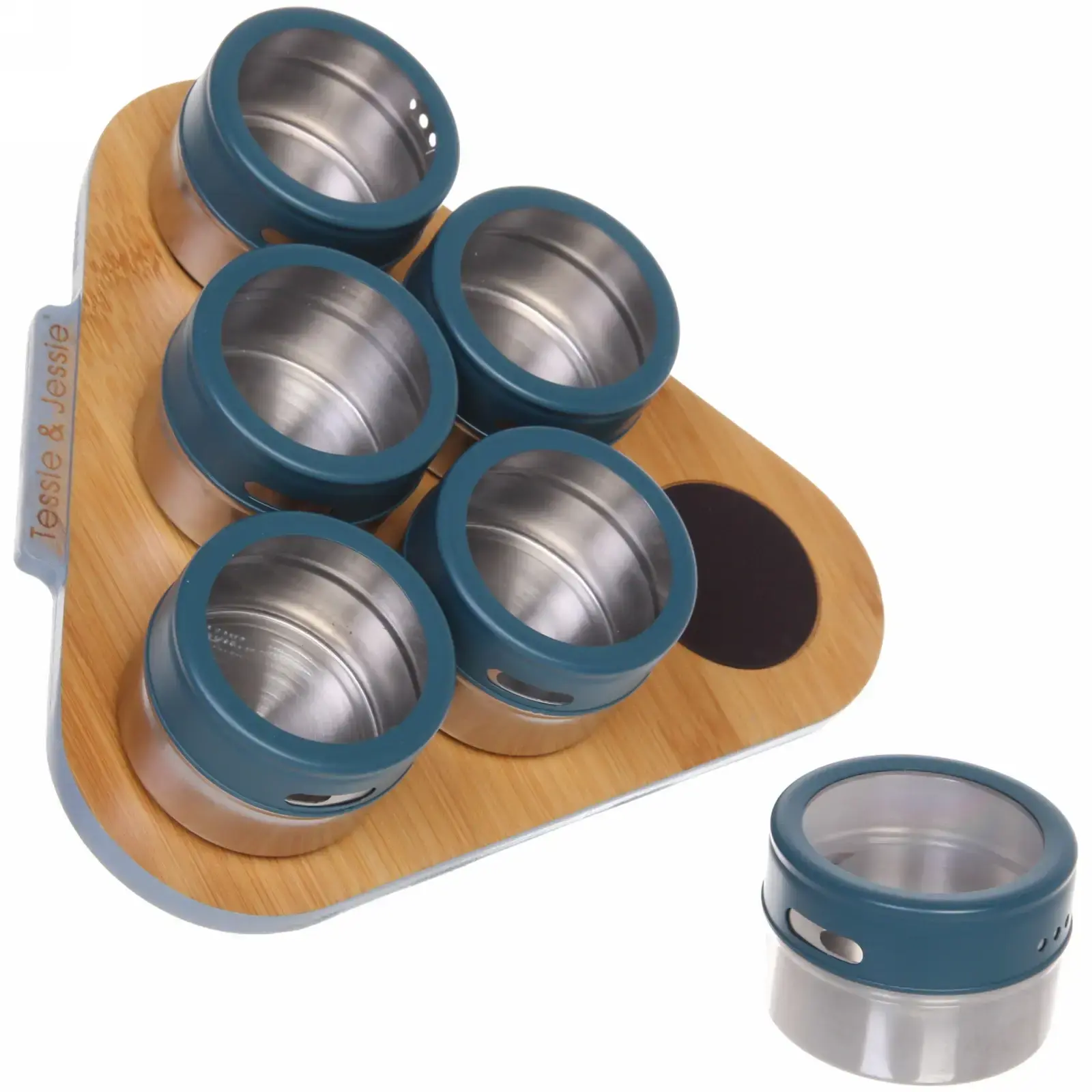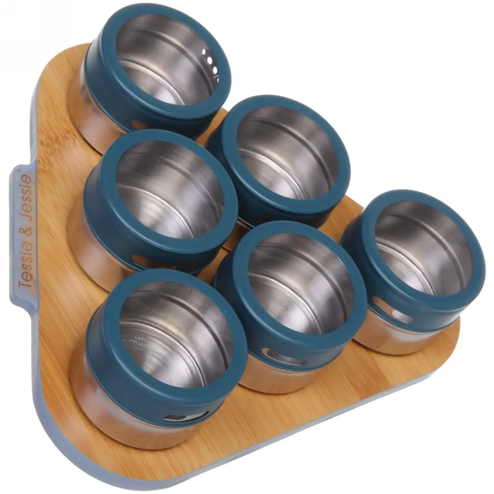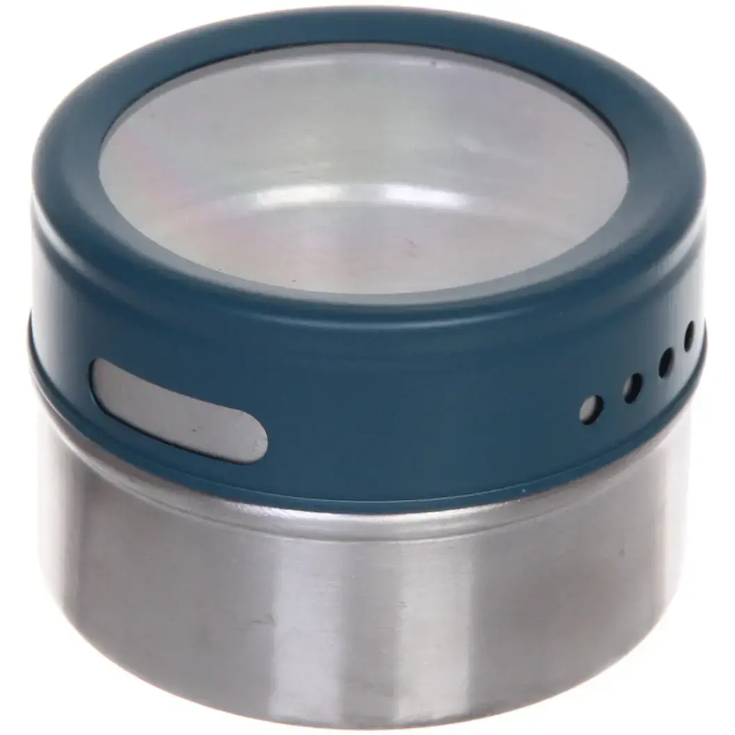 Набор контейнеров для специй «Tessie & Jessie», 6шт, металл/стекло, синие крышки, подставка 23х20см