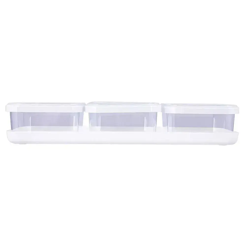 Этот набор из 3 прозрачных емкостей объемом 0,4 литра идеально подходит для хранения сыпучих продуктов, специи, крупы или мелкие детали. Легко использовать и разбирать, что обеспечивает комфортную организацию кухонного пространства и быстрый доступ к содержимому.