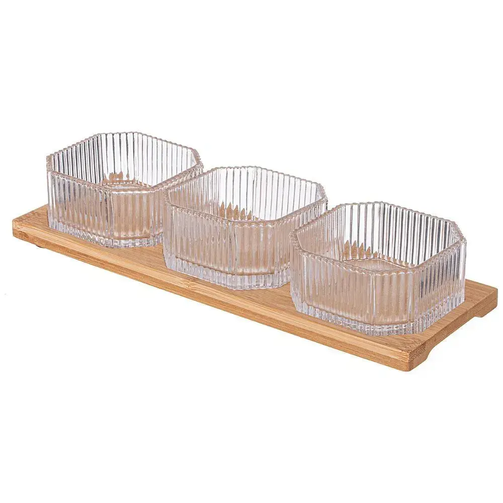 Набор стеклянных ёмкостей «Perfo» 8,5x4см на бамбуковой подставке, 3 шт — стильно и практично