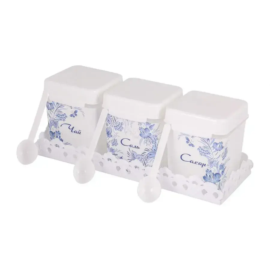 - Включает 3 контейнера с маркировкой для чая, соли и сахара