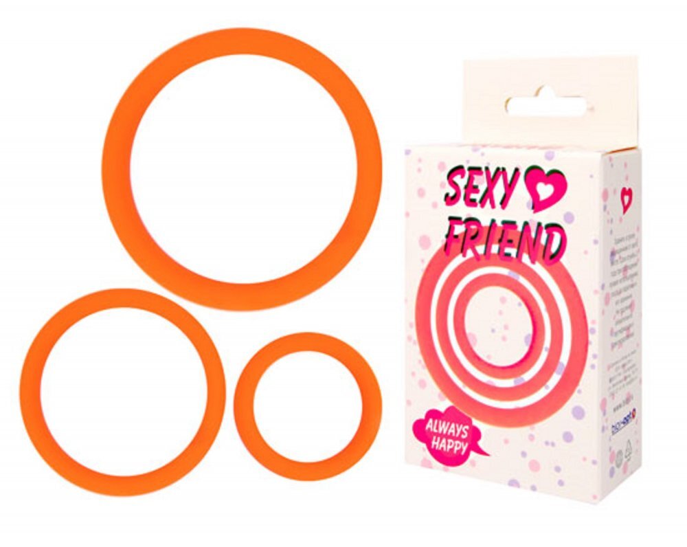 Эрекционные кольца «Sexy Friend» для усиления удовольствия, набор 3 шт, силикон, разные размеры, оранжевый