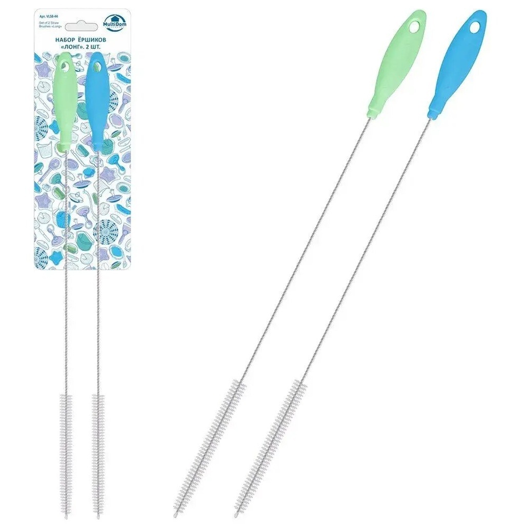 Набор ершиков 2 шт. с металлическим стержнем, пластиковые ручки, 36.5х1 см, цвета микс