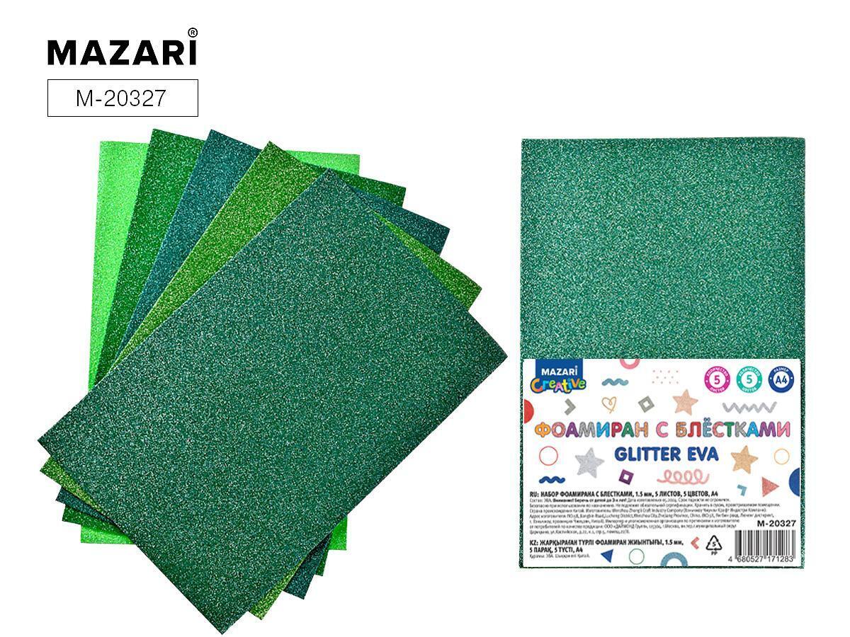 Размеры: формат А4 (210х297 мм), материал — пенистая EVA с блестками, толщина 1.5 мм. Количество листов — 5, каждый в своем цвете, что позволяет реализовать любые задумки и идеи.