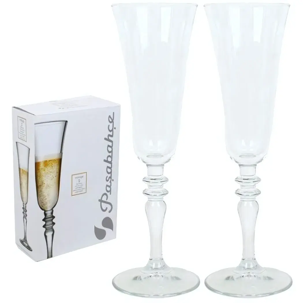 Фужеры имеют объем 190 мл, что идеально подходит для подачи шампанского и игристых вин. Они удобно лежат в руке благодаря утолщенной ножке и высокому корпусу, что делает их не только красивыми, но и практичными в использовании. Набор состоит из двух бокалов, что позволяет наслаждаться напитком в компании близкого человека.