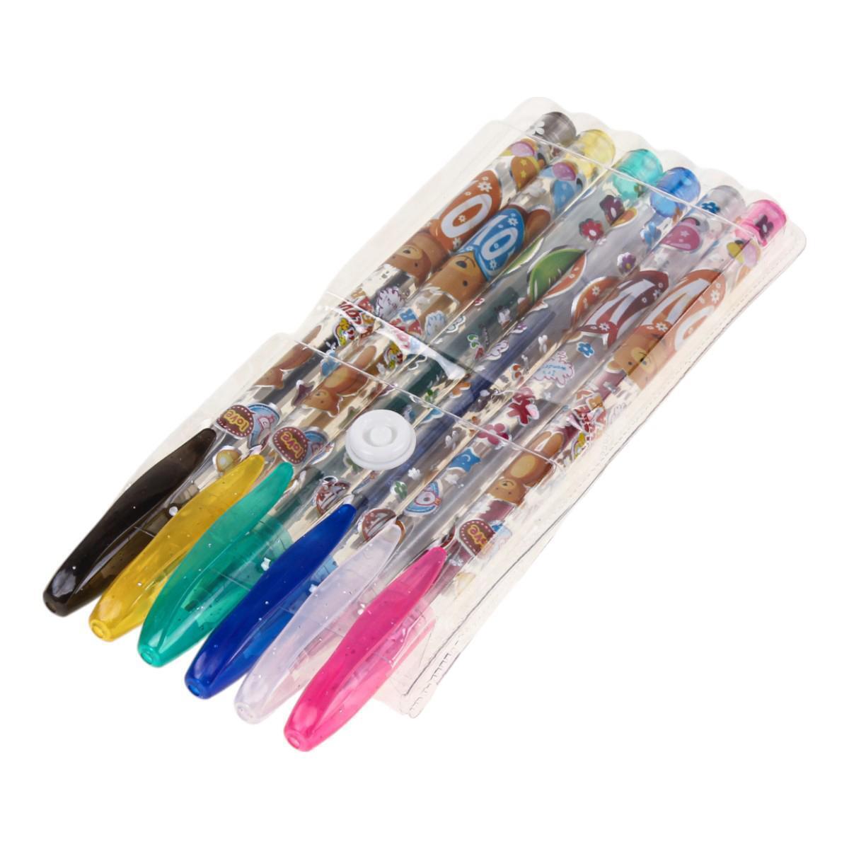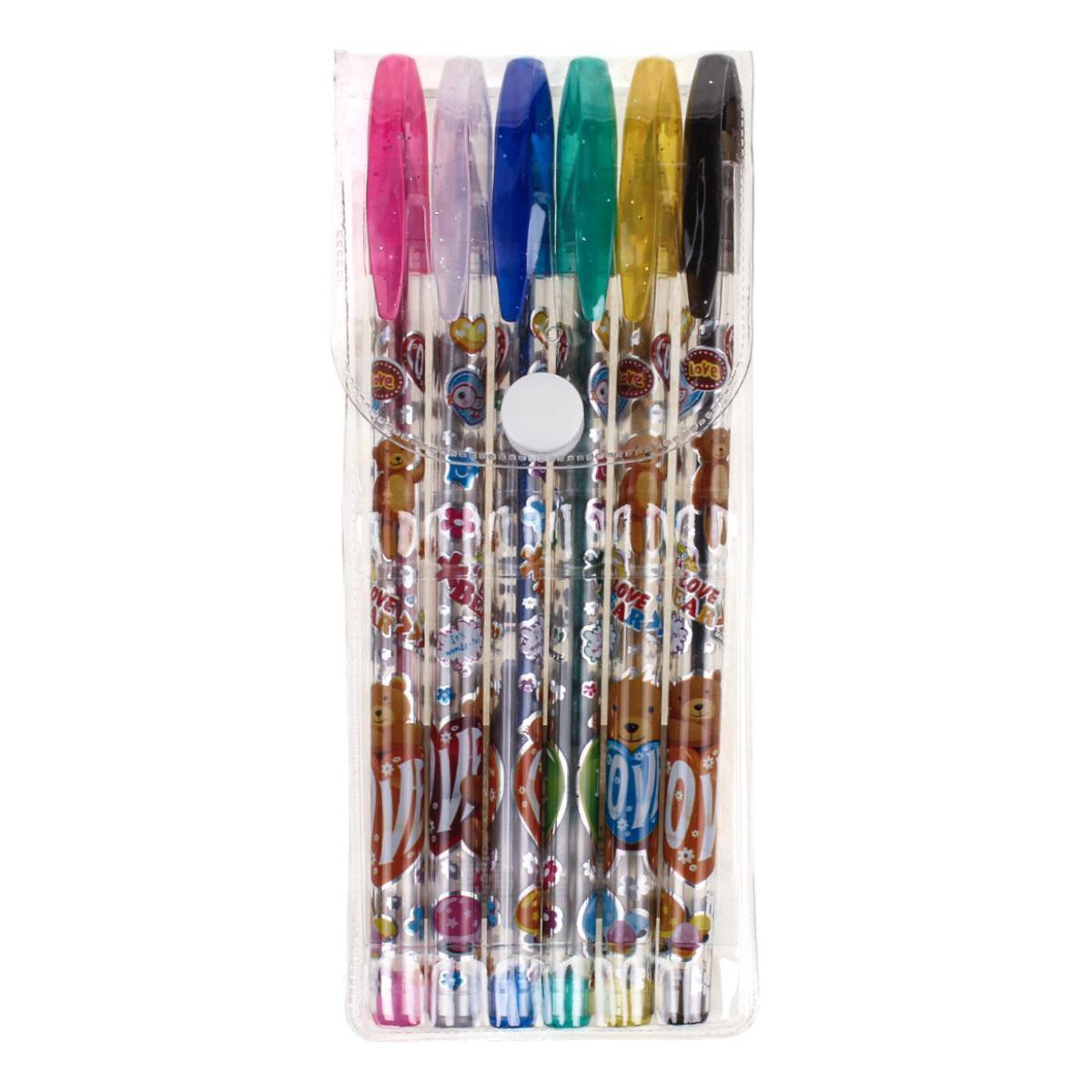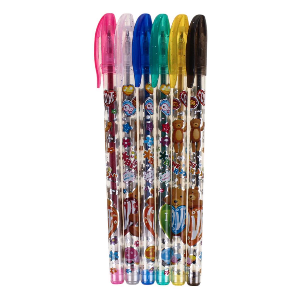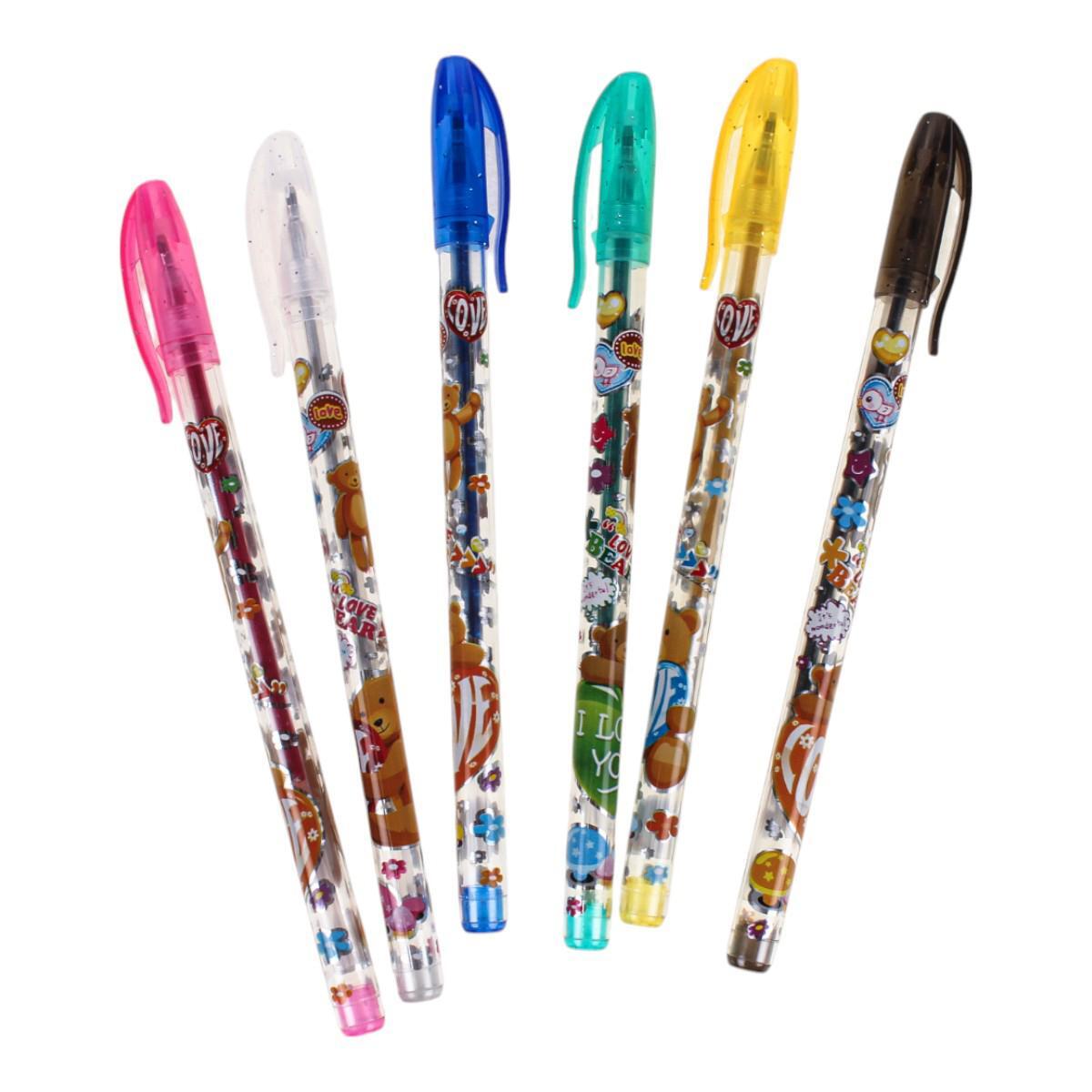 Набор гелевых ручек 6 цветов, с блестками и рисунками, для творчества