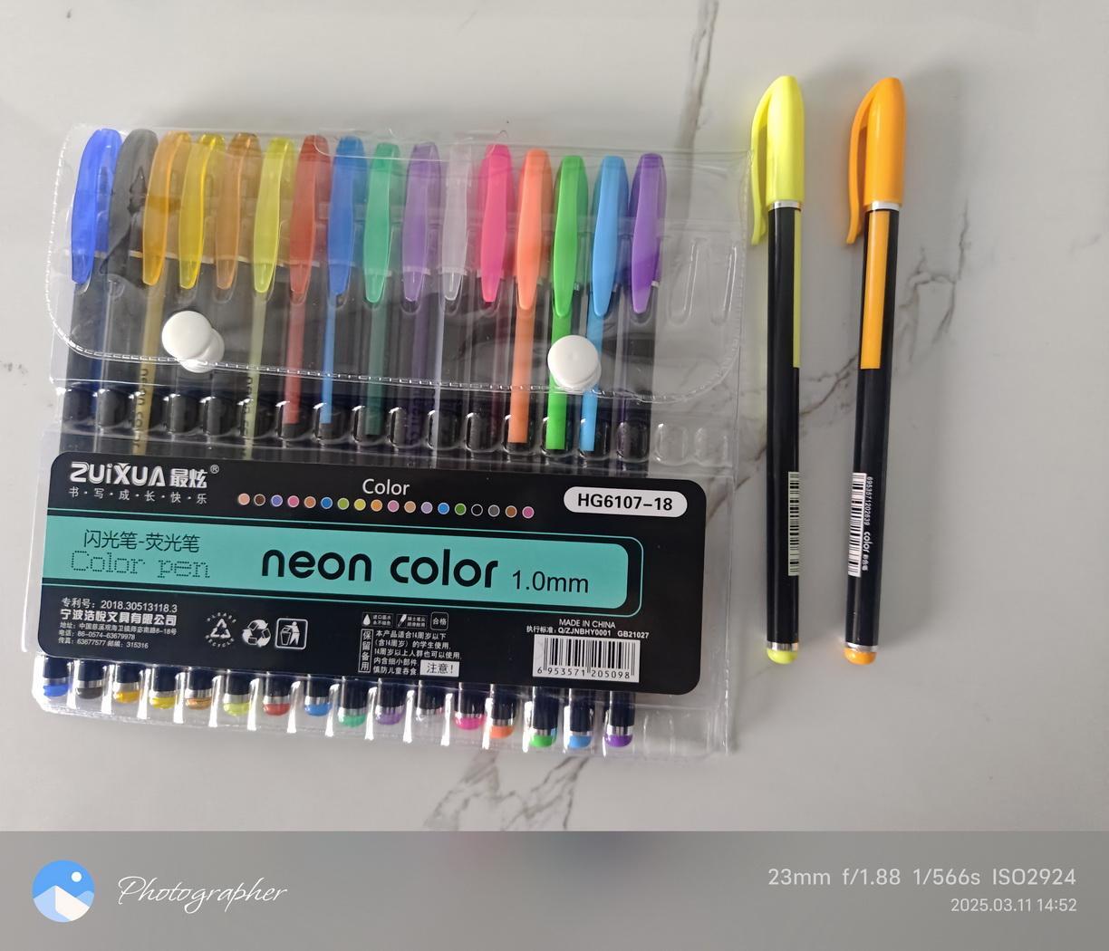 Создайте неповторимые заметки и записи с набором гелевых ручек 'HG6107-18'. Благодаря насыщенным цветам и эффекту блесток, ваши идеи будут выделяться среди других.