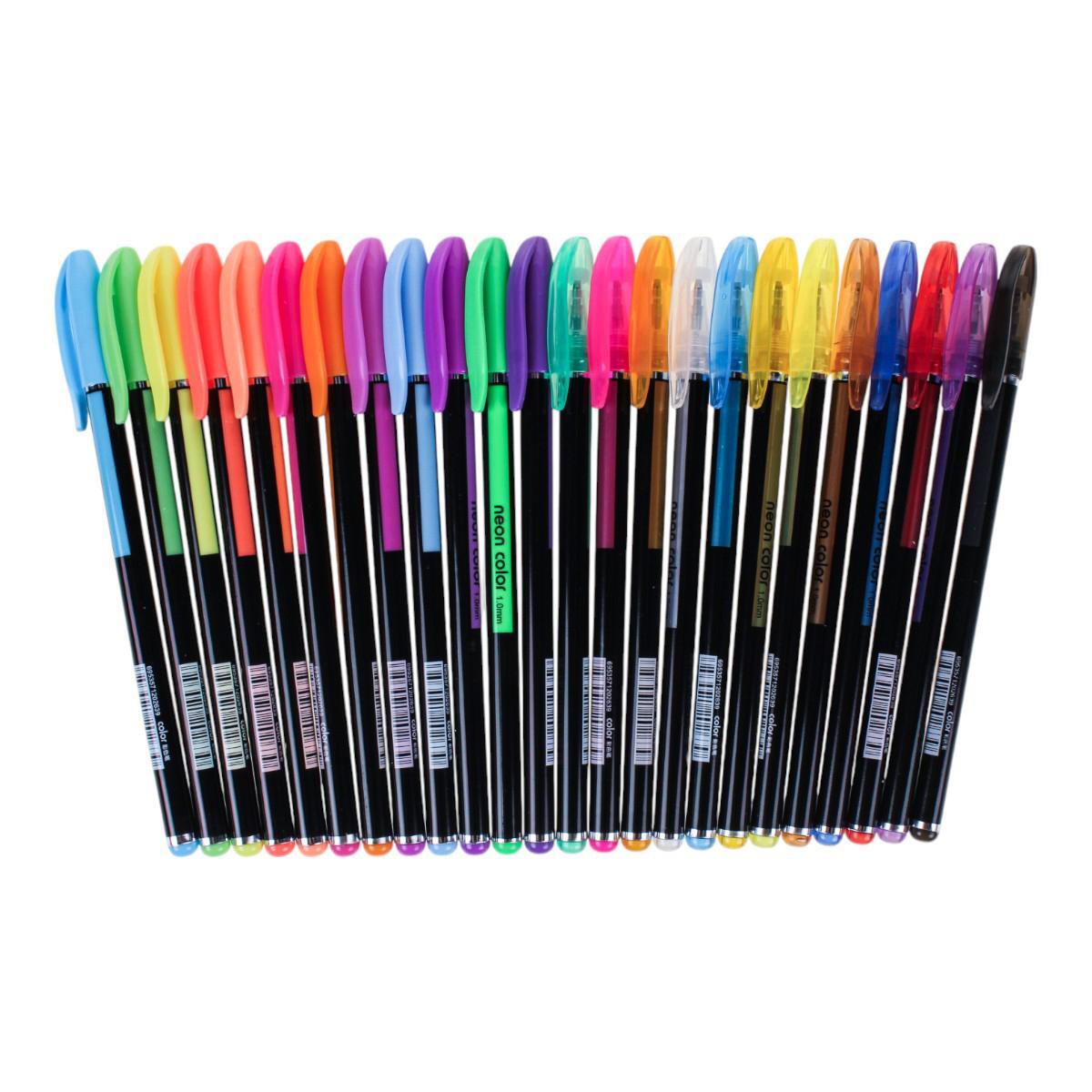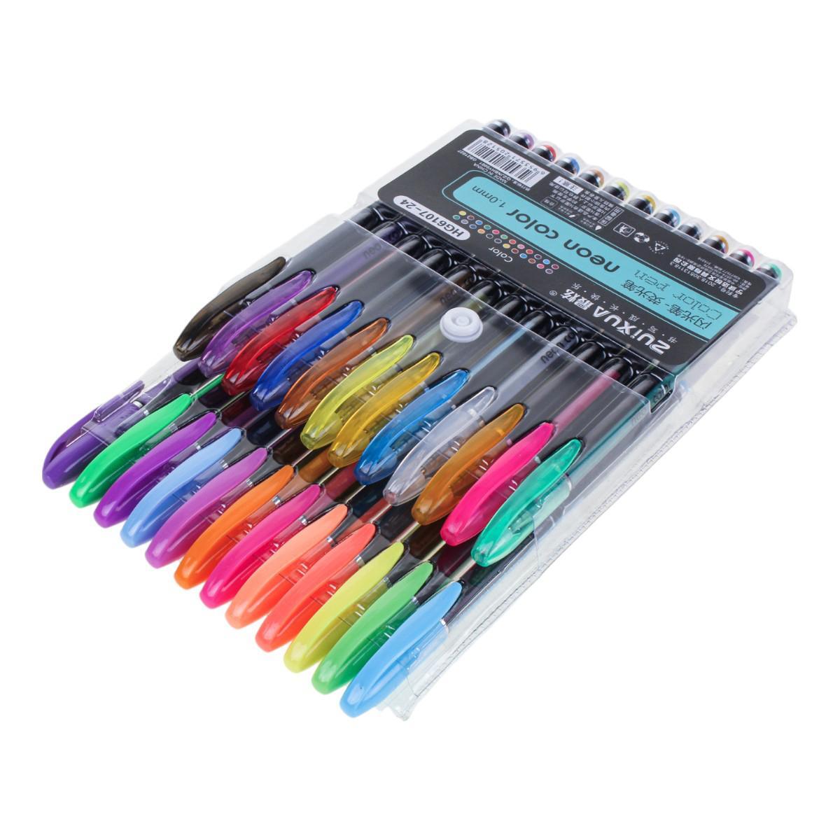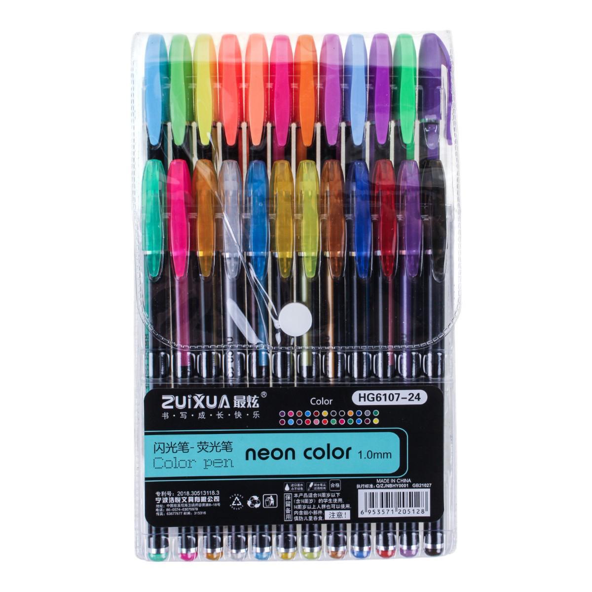 Набор гелевых ручек 24 цвета с блестками, 1 мм, неоновые оттенки, ПВХ-упаковка с замком
