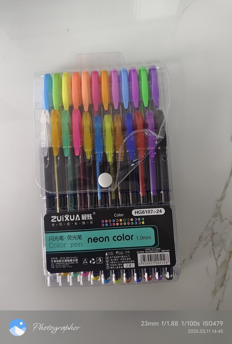 Набор из 24 гелевых ручек с блестками и неоновыми пигментами создан для тех, кто ценит насыщенные цвета и плавное письмо. Идеален для скетчинга, ведения ежедневников, оформления открыток и школьных проектов.