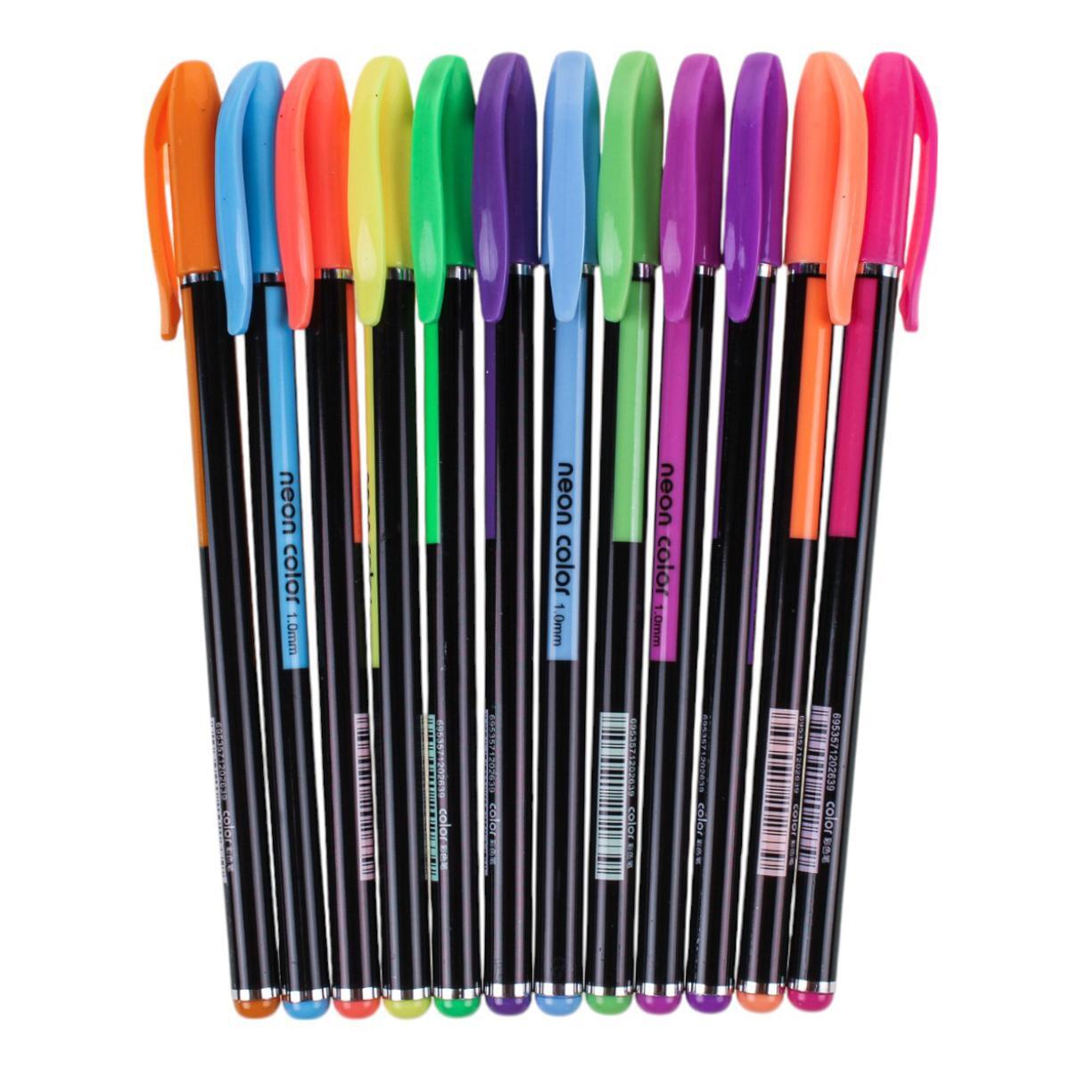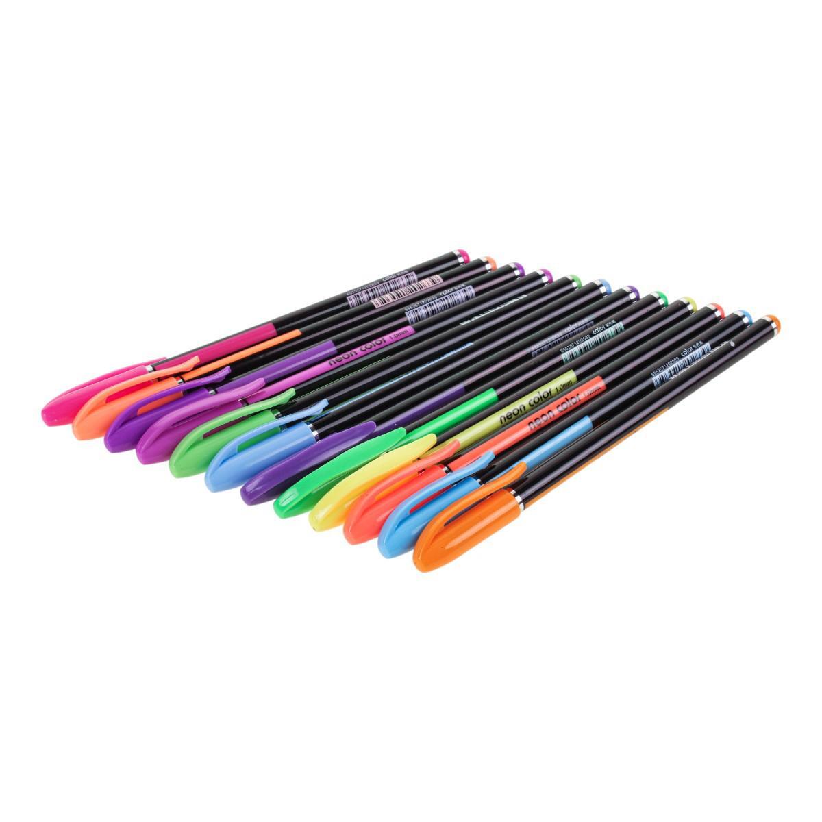 Набор состоит из 12 ручек различных неоновых цветов, включая зеленый, желтый, оранжевый, синий, красный, фиолетовый, розовый и черный. Они подходят как для школьников, так и для студентов, а также для всех, кто любит рисовать и творить. Удобный пластиковый корпус и металлический наконечник обеспечивают комфортное использование и долговечность.