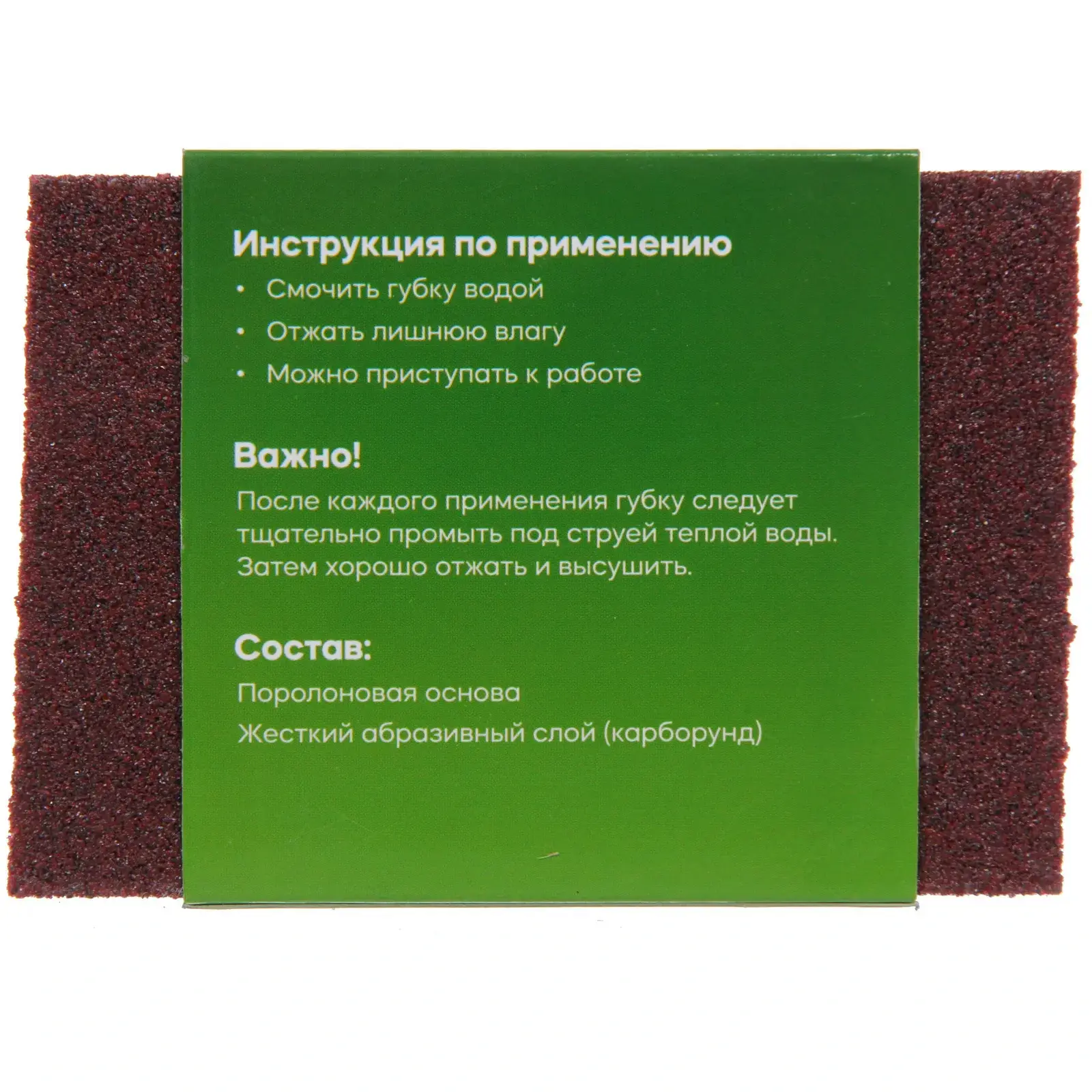 Использовать губку очень просто: достаточно смочить её водой, отжать лишнюю влагу и начать чистку. Губка активируется при контакте с водой, что делает процесс уборки быстрым и эффективным. Рекомендуется использовать перчатки для защиты кожи рук и избегать контакта губки с детьми и домашними животными.