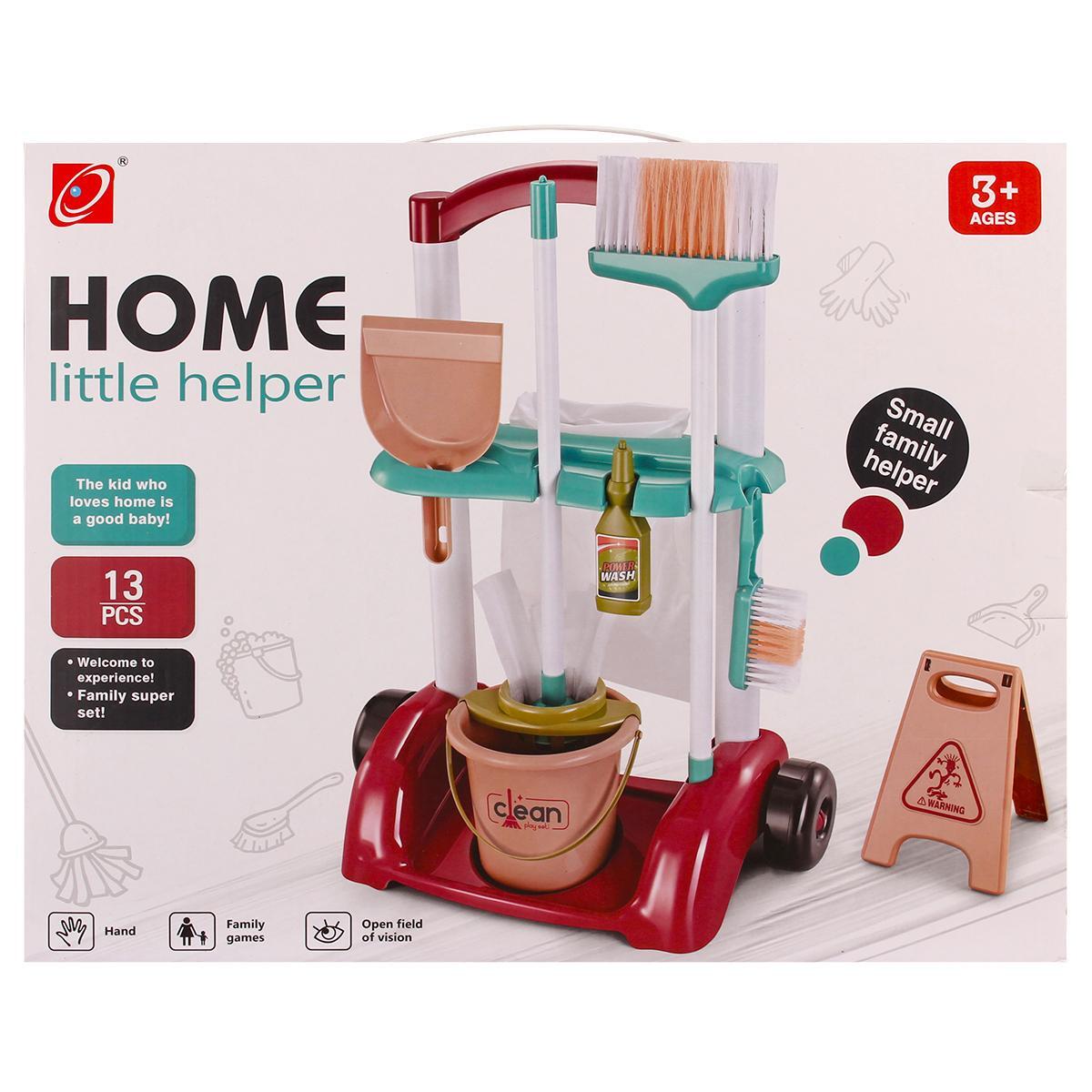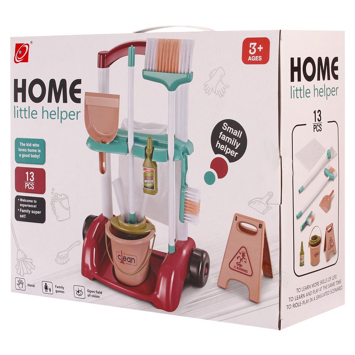 Игровой набор для уборки, 13 предметов с тележкой на колесах, пластик, 40×14×32 см
