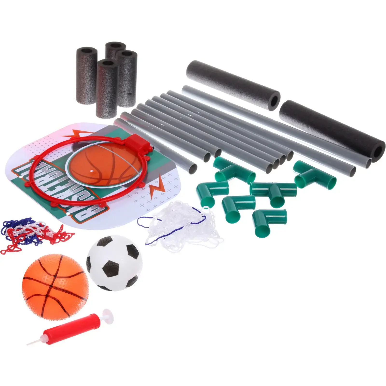 Материалы, из которых изготовлен набор, включают прочный пластик и резину, что обеспечивает долговечность и безопасность во время игры. Размеры ворота и кольца позволяют легко установить их в любом бассейне. Набор подходит для детей старше 6 лет, что делает его отличным подарком для маленьких спортсменов.