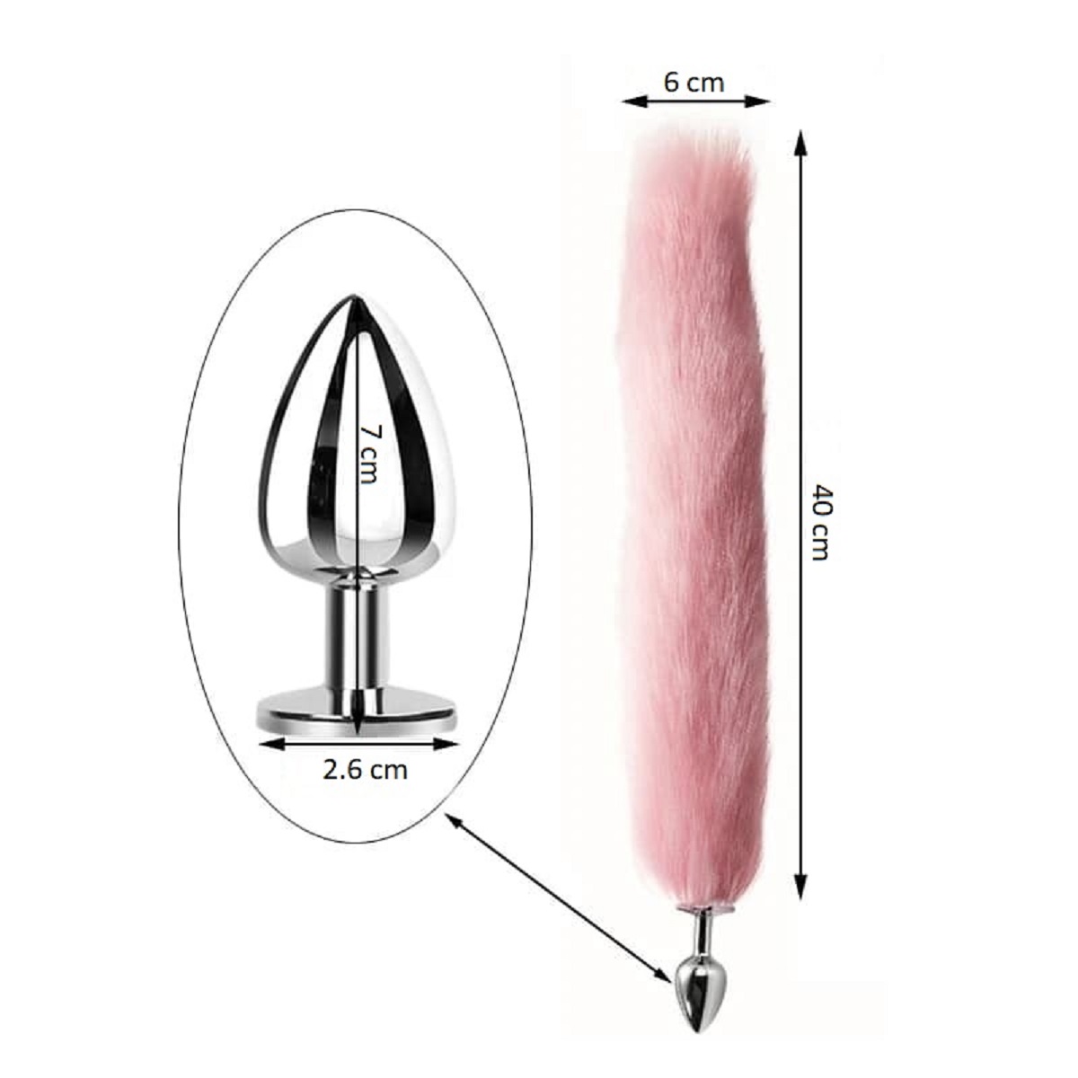 Хвост состоит из двух частей и легко собирается перед использованием. Чокер регулируется по размеру благодаря кнопкам-застежкам, что позволяет подобрать удобную посадку. Зажимы оснащены винтовым механизмом для настройки степени сжатия, а мягкие накладки делают контакт более деликатным. Ободок надежно фиксируется на голове и дополняет образ игривыми акцентами.
