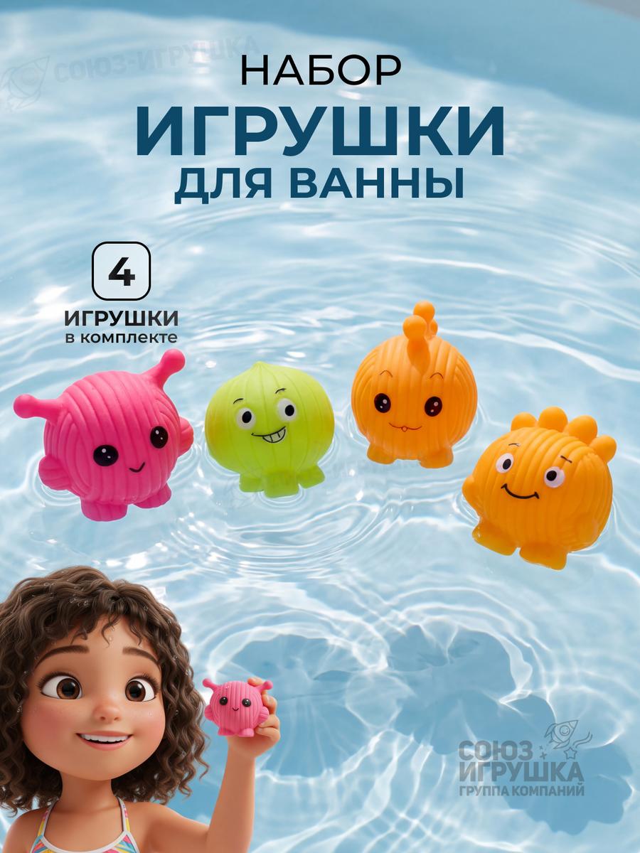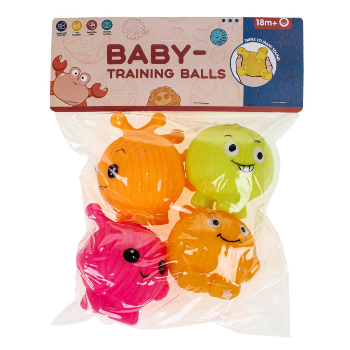 Набор игрушек для купания "Baby-Training Balls", 4 шт., резиновые, яркие цвета, для детей от 18 месяцев