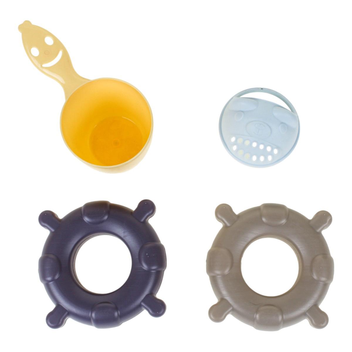 - Практичный ковшик-черпачок с перфорированной верхней частью (ситечко) — для игр с "дождиком" и переливанием.