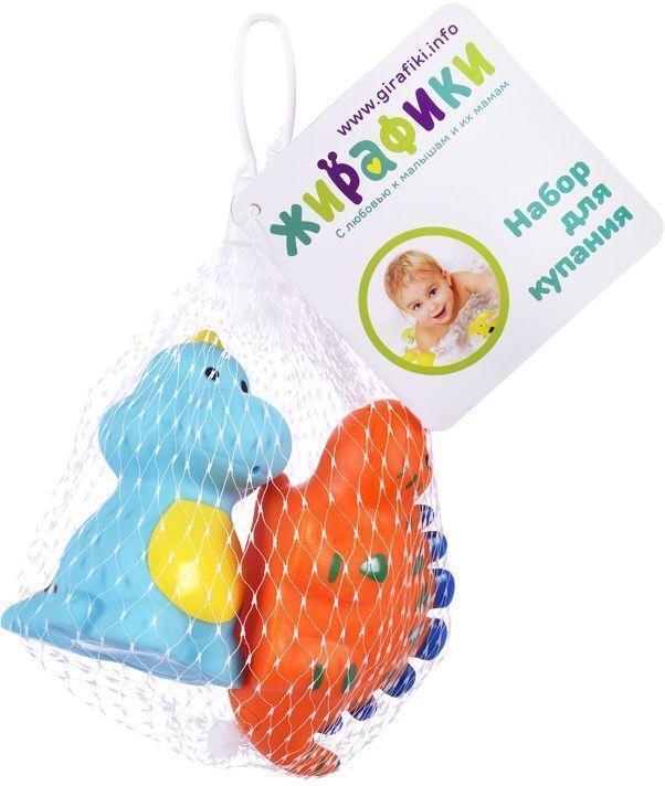 Игрушки для купания 'Динозаврики', 4см, ПВХ, голубой/оранжевый