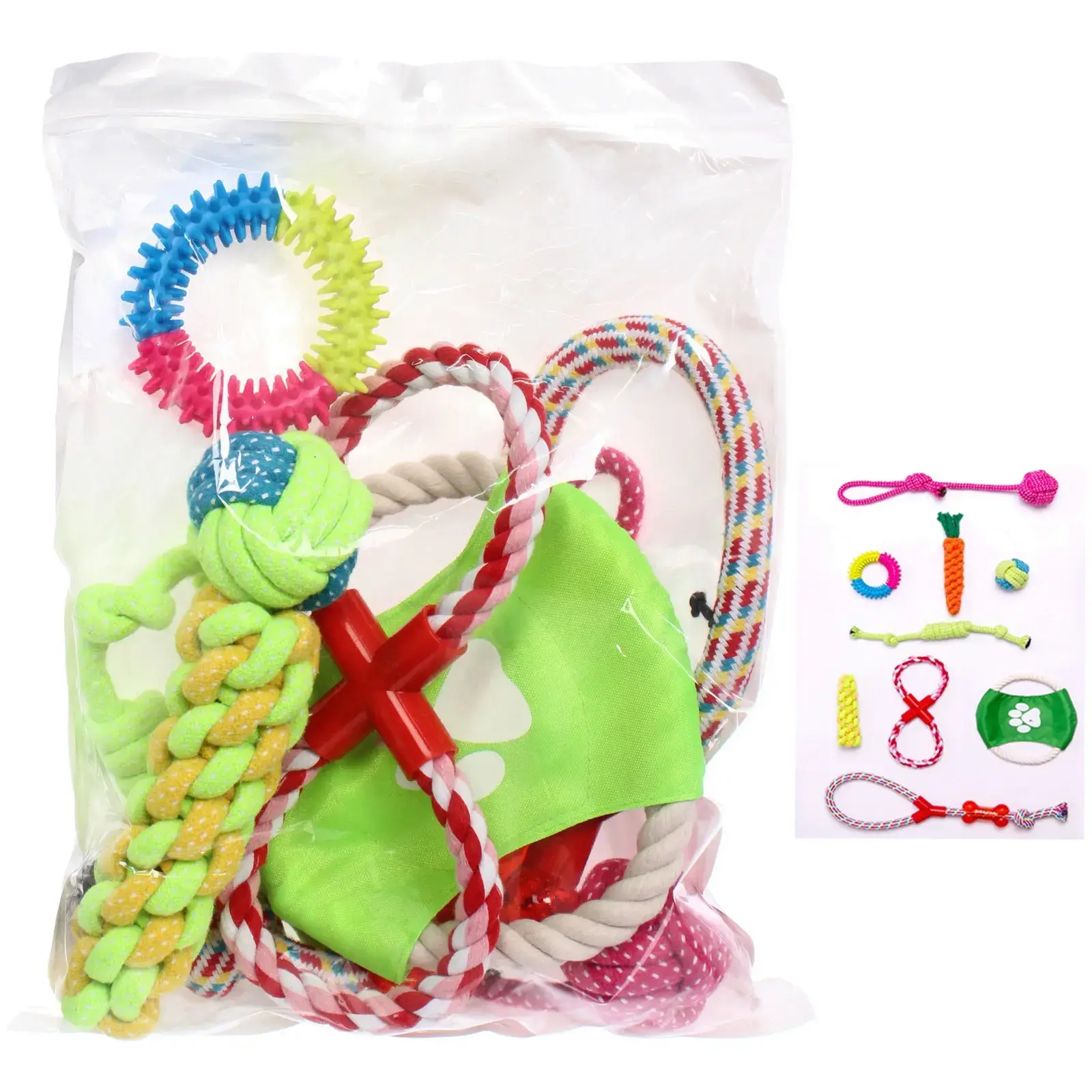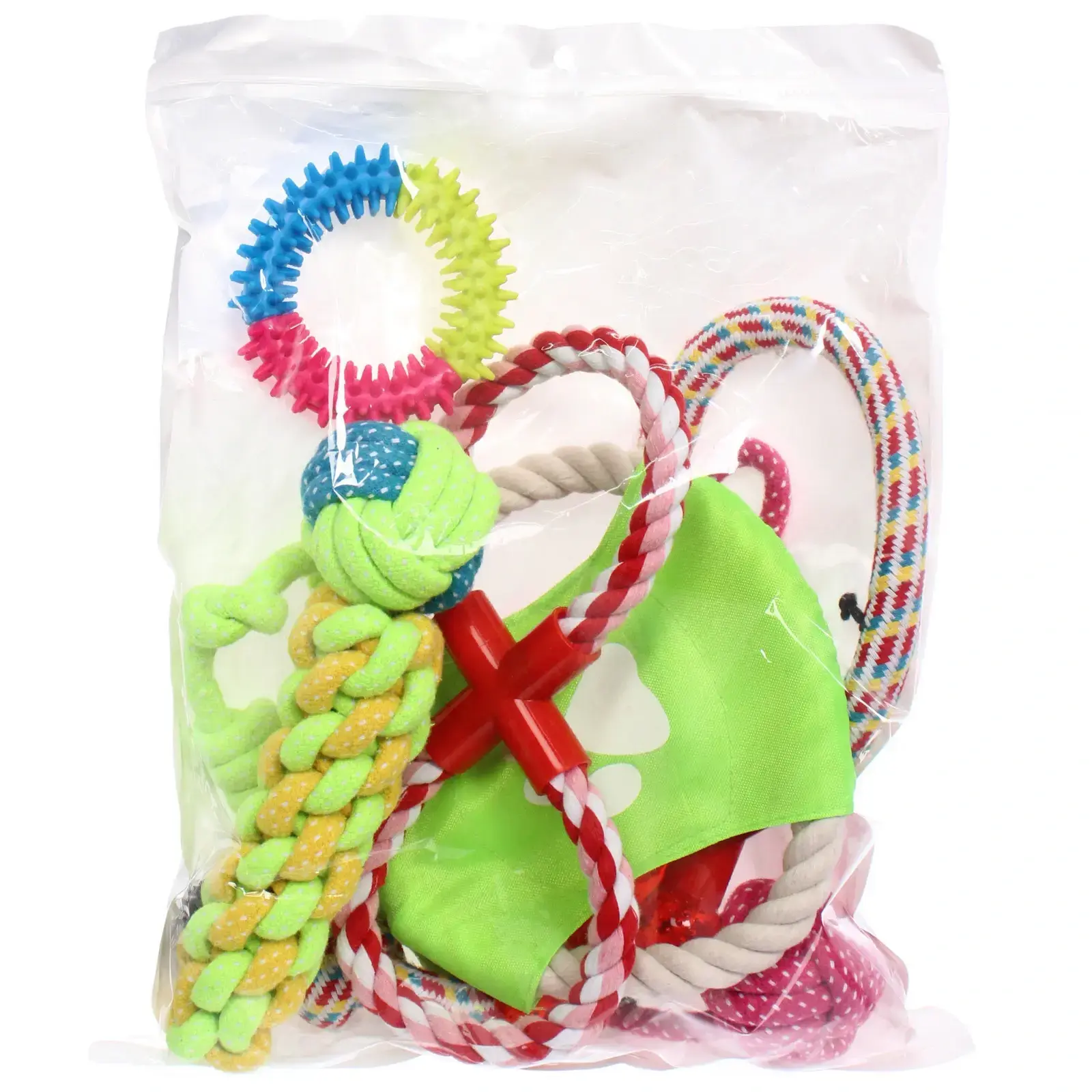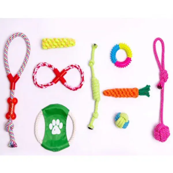 Игрушки подходят для собак всех пород и размеров, что делает их идеальными для активных игр как в помещении, так и на улице. В набор входят игрушки различных форм: кольца, мячи, веревки и жевательные элементы, что позволяет разнообразить игры и поддерживать физическую активность вашего питомца.