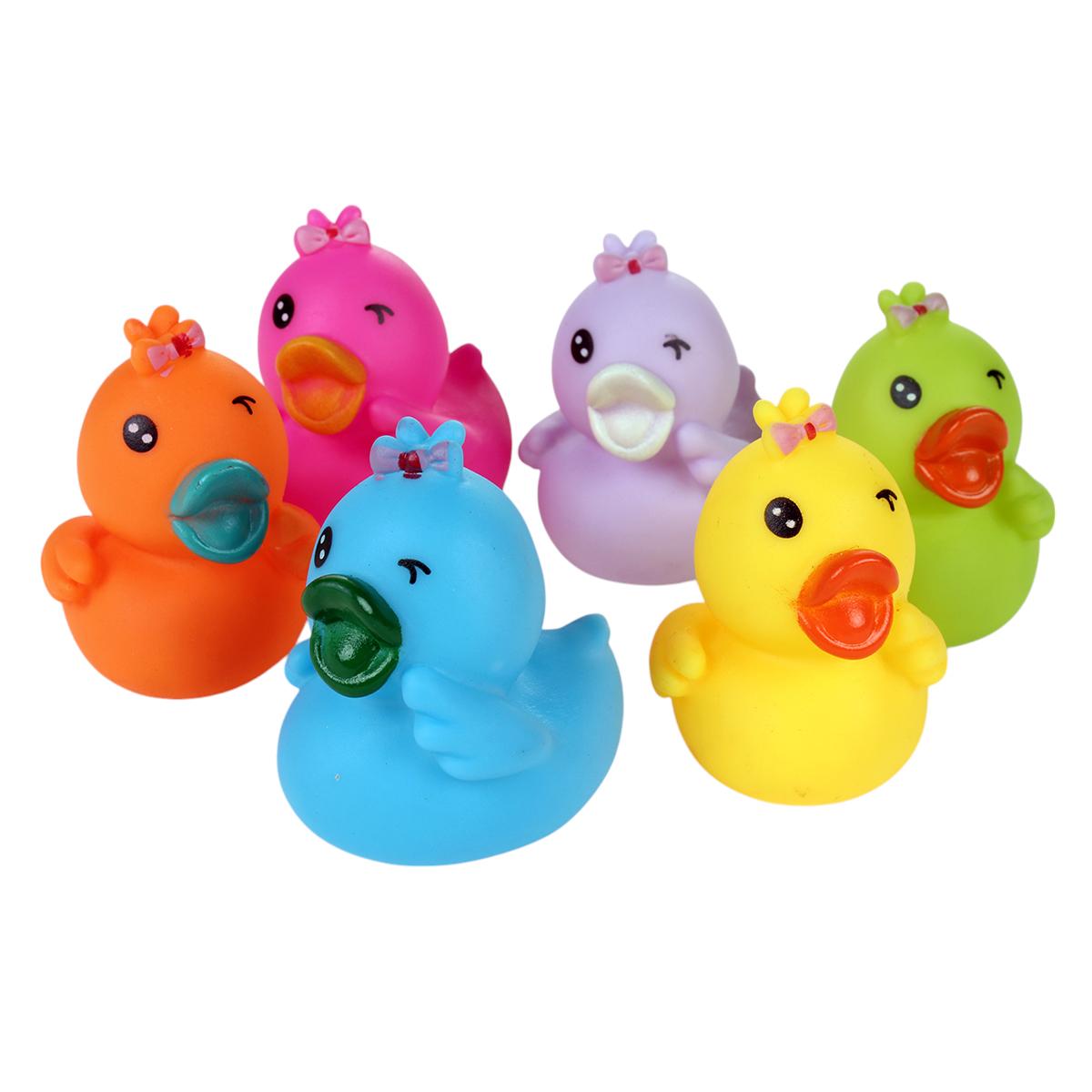 - 6 резиновых уточек разных цветов (розовая, оранжевая, желтая, зеленая, синяя, фиолетовая)