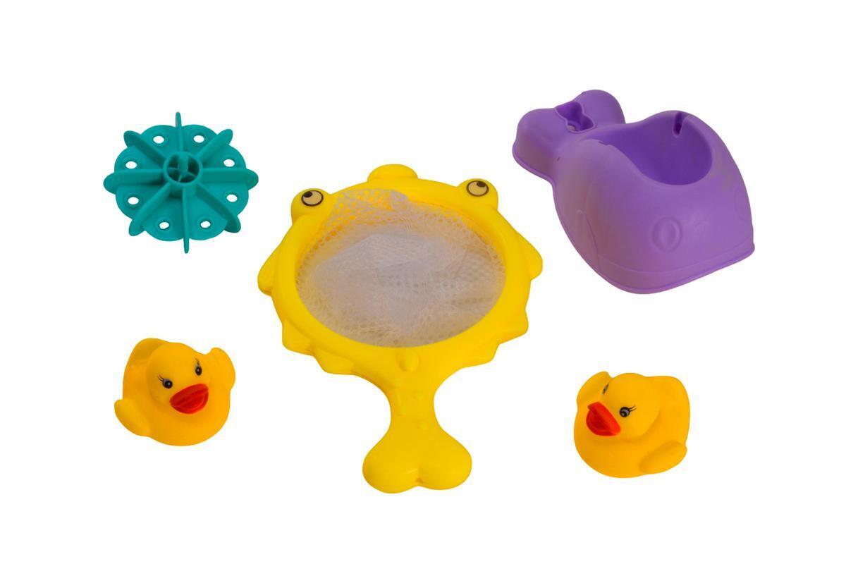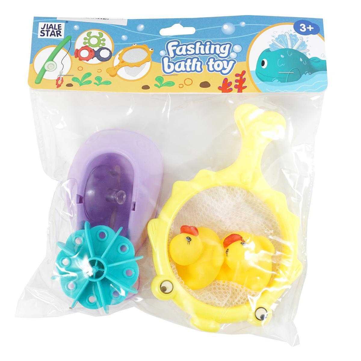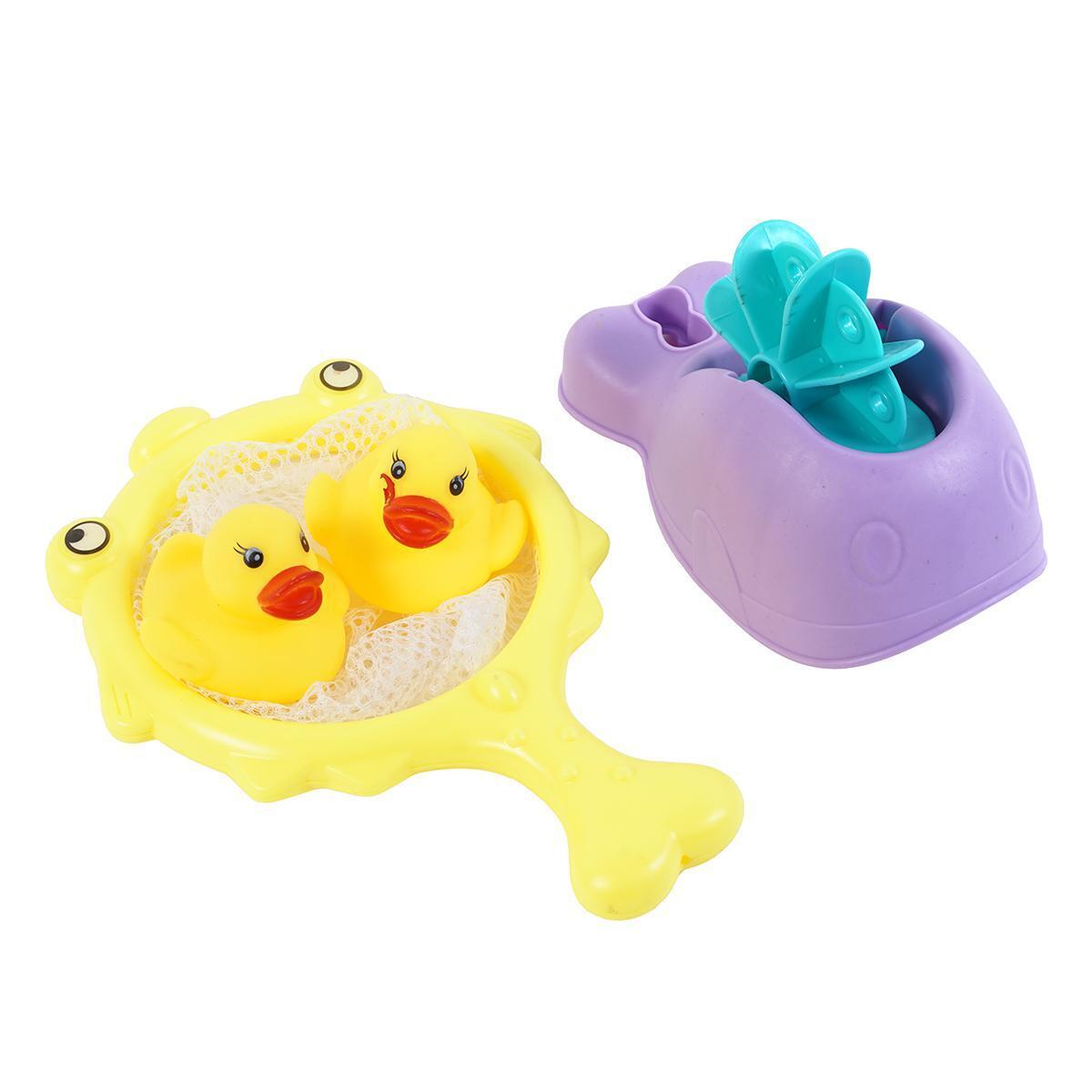 Набор игрушек для ванной, 3 предмета: уточки, сетка-рыба, кит с пропеллером, безопасный пластик, яркие цвета, 3+