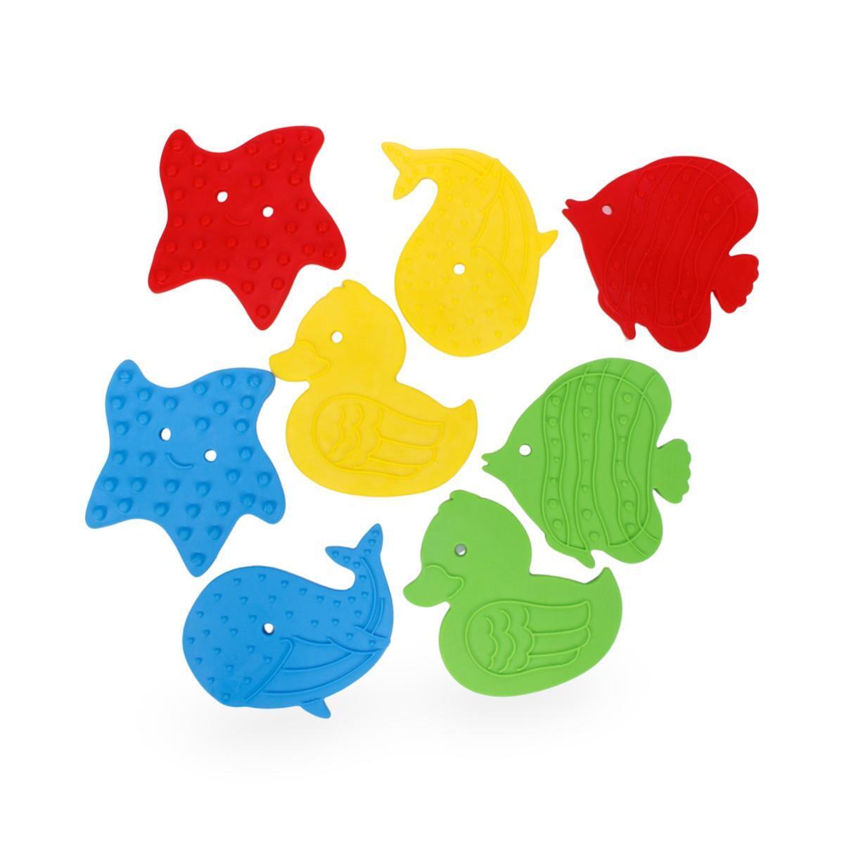 Набор состоит из 8 мини-ковриков, которые можно использовать как для игры в ванной, так и для создания веселой атмосферы во время купания. Игрушки легко крепятся благодаря отверстиям, что позволяет вашему ребенку развивать координацию движений. Подходят для детей старше 6 месяцев.