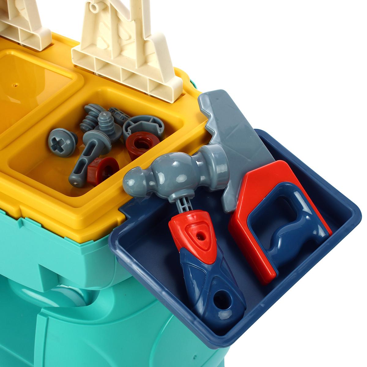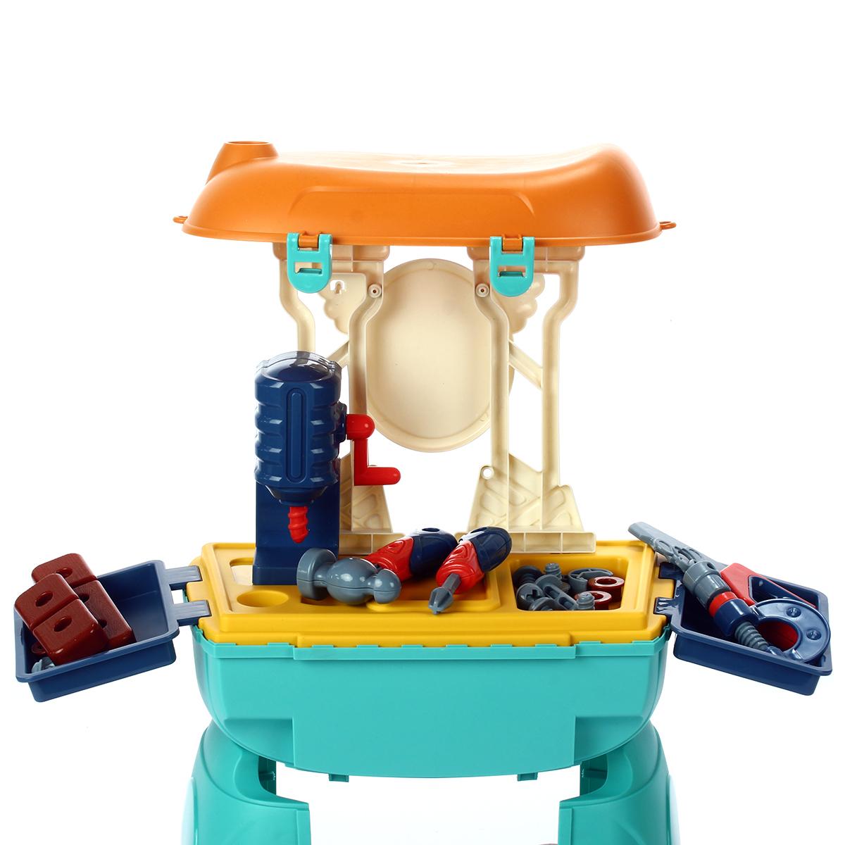 Набор включает в себя молоток, гаечный ключ, ручную пилу, тиски и набор гаек и болтов. Все инструменты выполнены из прочного пластика, что делает их безопасными для детей. Рабочий стол, на котором размещены инструменты, позволяет удобно организовать процесс игры и обучения. Данный набор подходит для детей от 3 лет и старше, способствуя развитию моторики и координации.