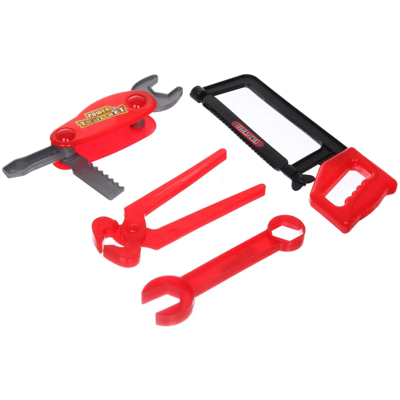 Набор инструментов предназначен для активной игры и обучения. Он идеально подходит для детей, которые любят имитировать взрослых и заниматься строительством. В комплект входят гаечный ключ, пила, плоскогубцы и рожковый ключ, что позволяет ребенку выполнять различные строительные задачи в игре.