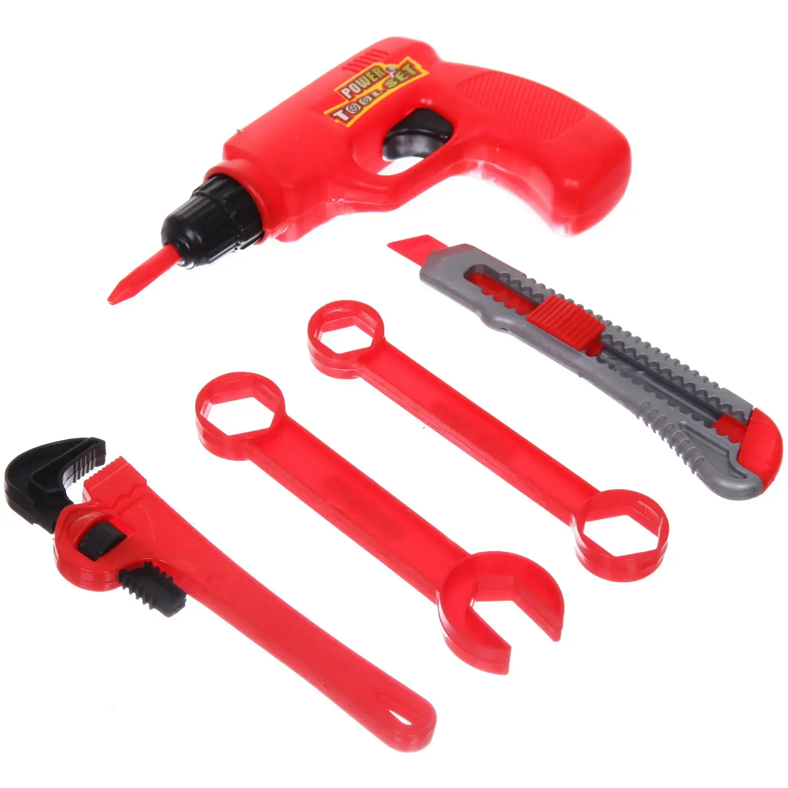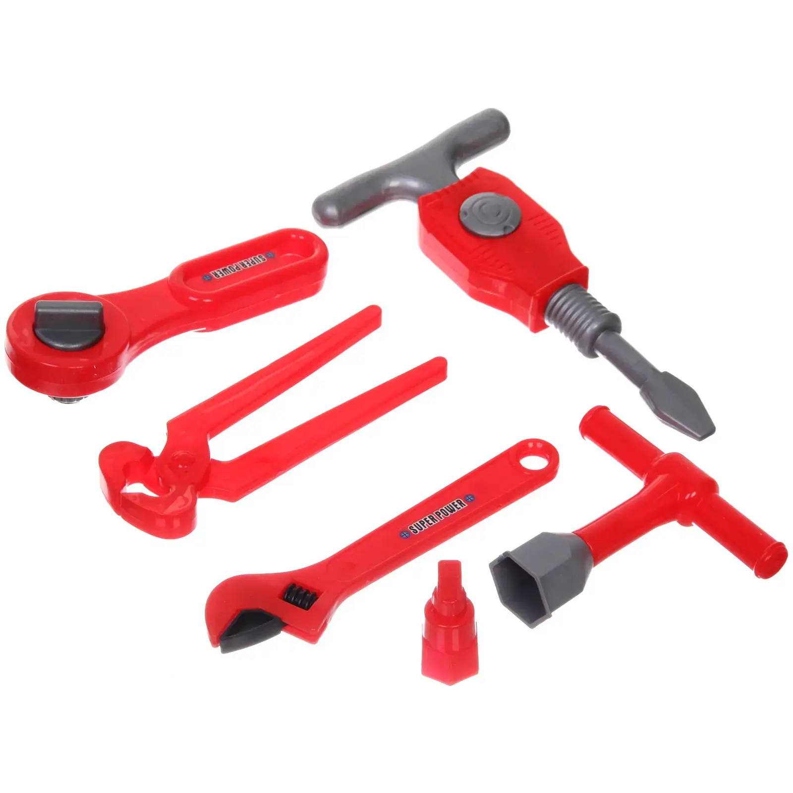 Набор включает в себя игрушечную дрель, плоскогубцы, гаечные ключи и отвертку, что делает его идеальным для сюжетно-ролевых игр. Все инструменты выполнены из безопасного пластика, что гарантирует их долговечность и безопасность для детей. Они подходят для детей старше 3 лет и могут использоваться как в домашних условиях, так и на улице.
