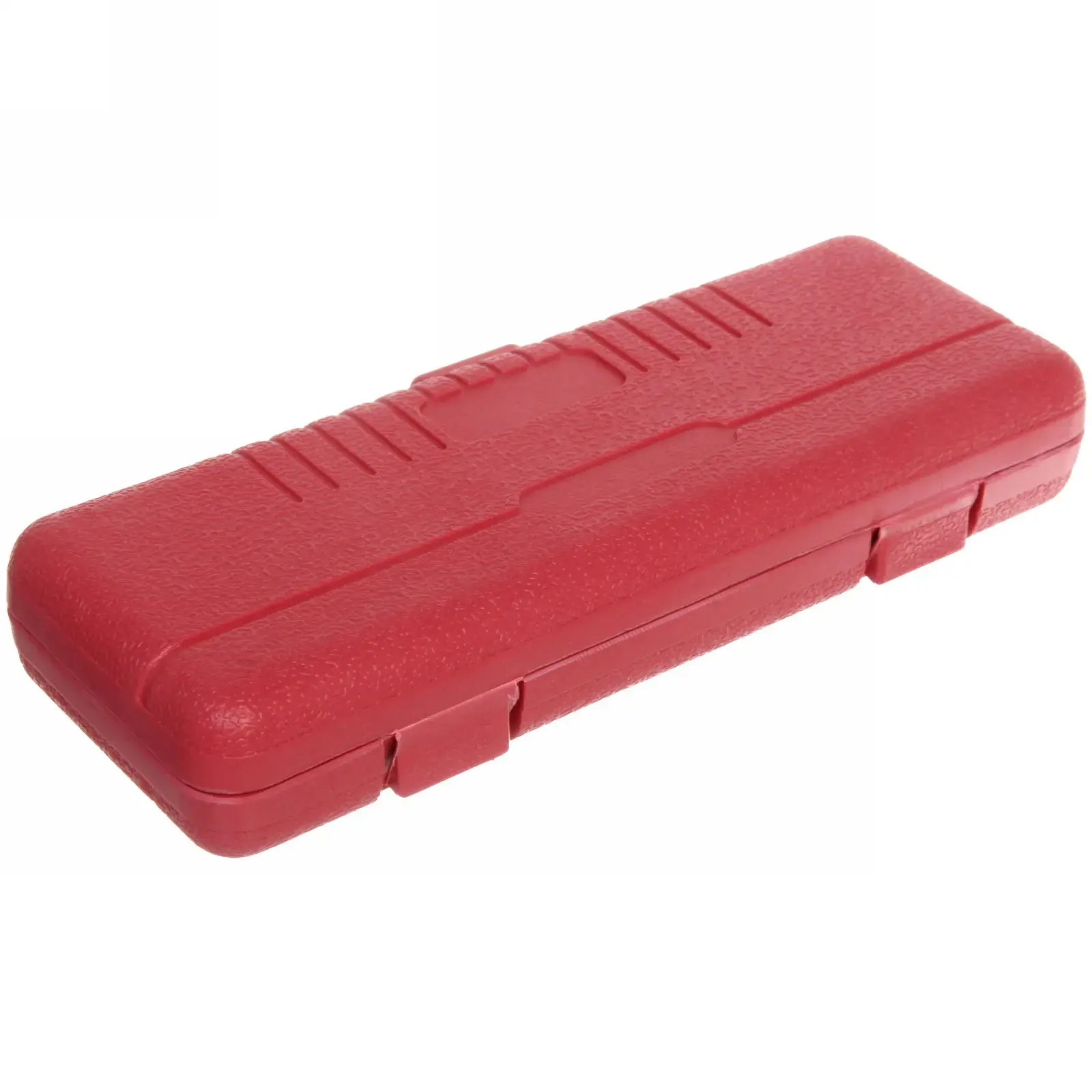 Красный пластиковый кейс с надёжными защёлками защищает инструменты от потери и повреждений. Специальные ячейки повторяют форму каждого элемента — вам не придётся искать нужную головку среди беспорядка.