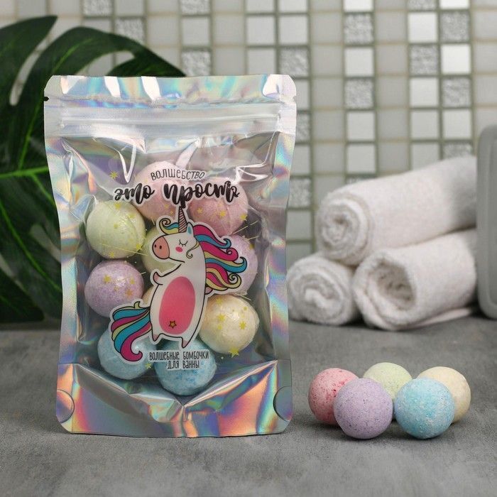 Каждая бомбочка имеет гладкую текстуру и яркие цвета: розовый, голубой, желтый, зеленый и фиолетовый. Упаковка с голографическим эффектом не только привлекает внимание, но и делает набор отличным подарком для близких. Не упустите возможность окунуться в мир волшебства и насладиться каждым моментом!