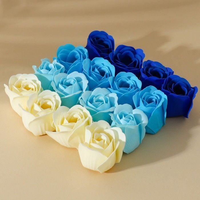 Каждый лепесток изготовлен из качественного мыла, что обеспечивает долговечность и приятные ощущения при использовании. Набор включает 16 лепестков различных оттенков синего и белого цветов, что добавляет эстетическую ценность. Упаковка оформлена в темно-синих и золотых тонах, что делает ее отличным подарком для близких.