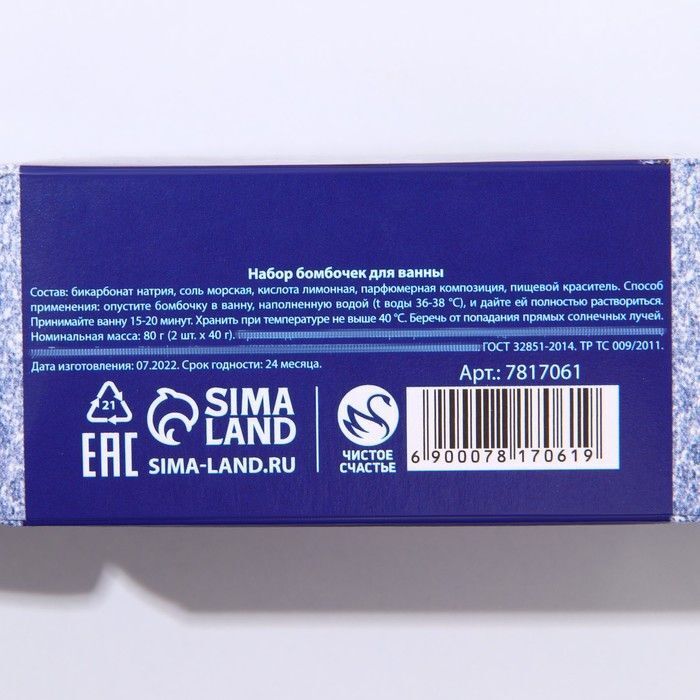 - Состав: бикарбонат натрия, морская соль, лимонная кислота, парфюмированная композиция, пищевой краситель