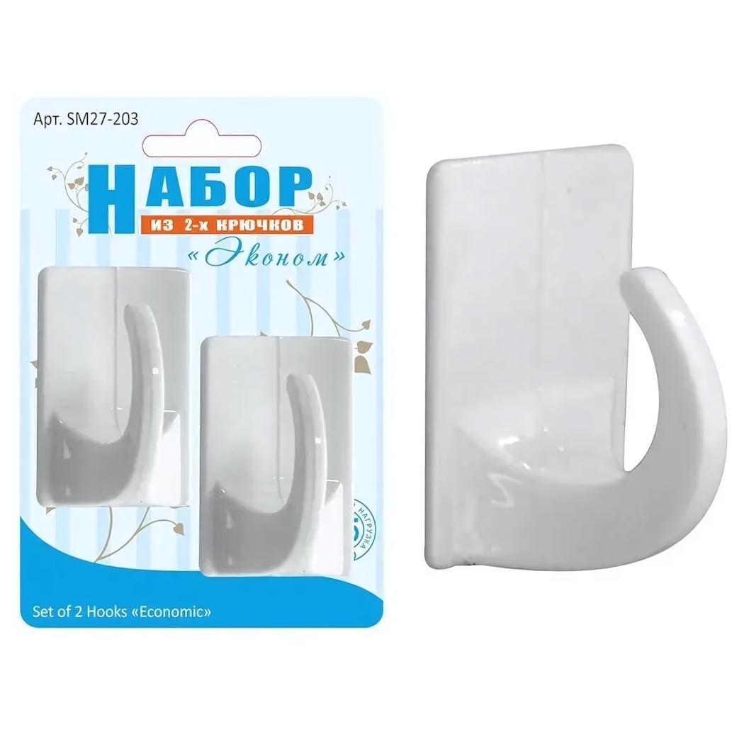 Крючки настенные самоклеющиеся, комплект из 2 штук, прямоугольные, белые, пластик, SM27-203