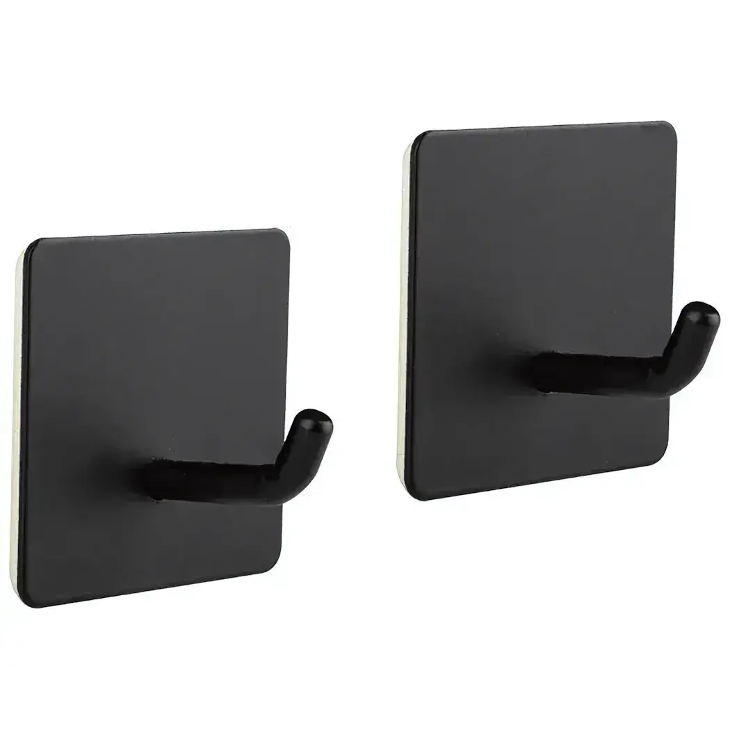 Набор из 2 крючков самоклеющихся, металл, квадратная форма, черный цвет