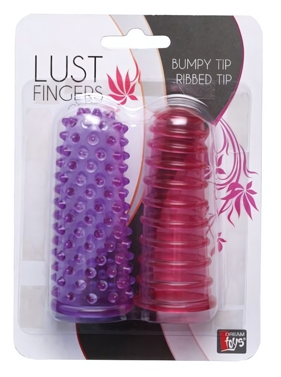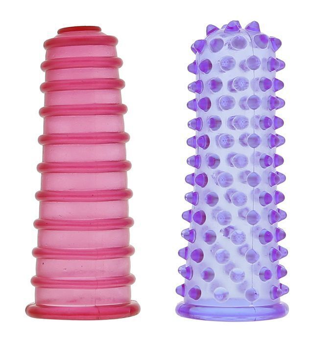 Насадки на пальцы для стимуляции, 2 шт., текстуры «Bumpy Tip» и «Ribbed Tip», ПВХ, 8 см, фиолетовый с розовым