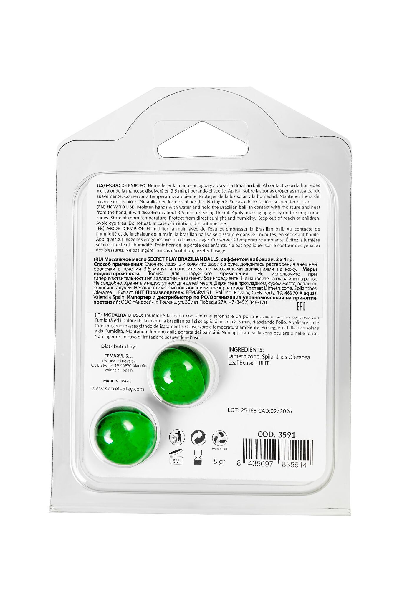 Массажные шарики Brazilian Balls, 2шт по 4г, вибрационный эффект