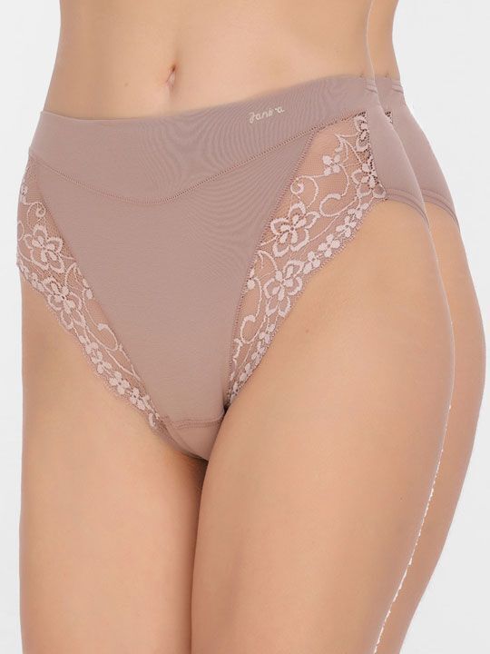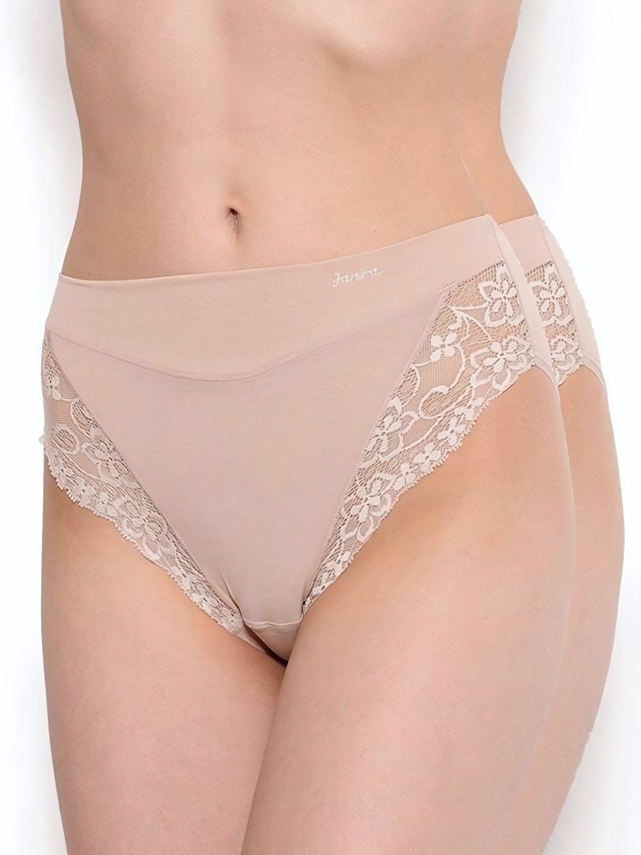 Набор из двух трусиков-слип с деликатным кружевом сочетает в себе природную мягкость хлопка и элегантность дизайна. Идеальная посадка по фигуре обеспечивается за счёт эластичного материала с оптимальным содержанием эластана.