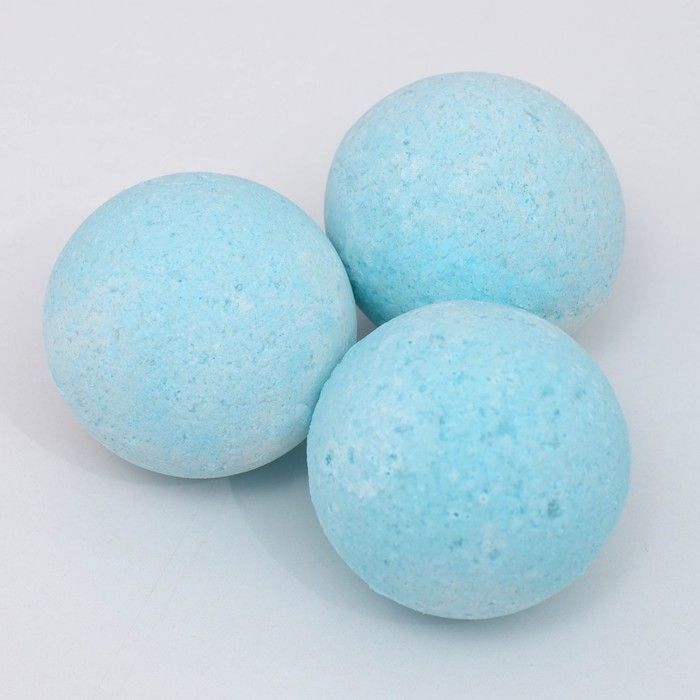 В набор входят 3 бомбочки, каждая из которых весит 40 г. Они имеют округлую форму и светло-голубой цвет с мелкими белыми вкраплениями, что делает их не только полезными, но и красивыми. Упаковка оформлена в новогоднем стиле, что подчеркивает ее праздничное назначение.