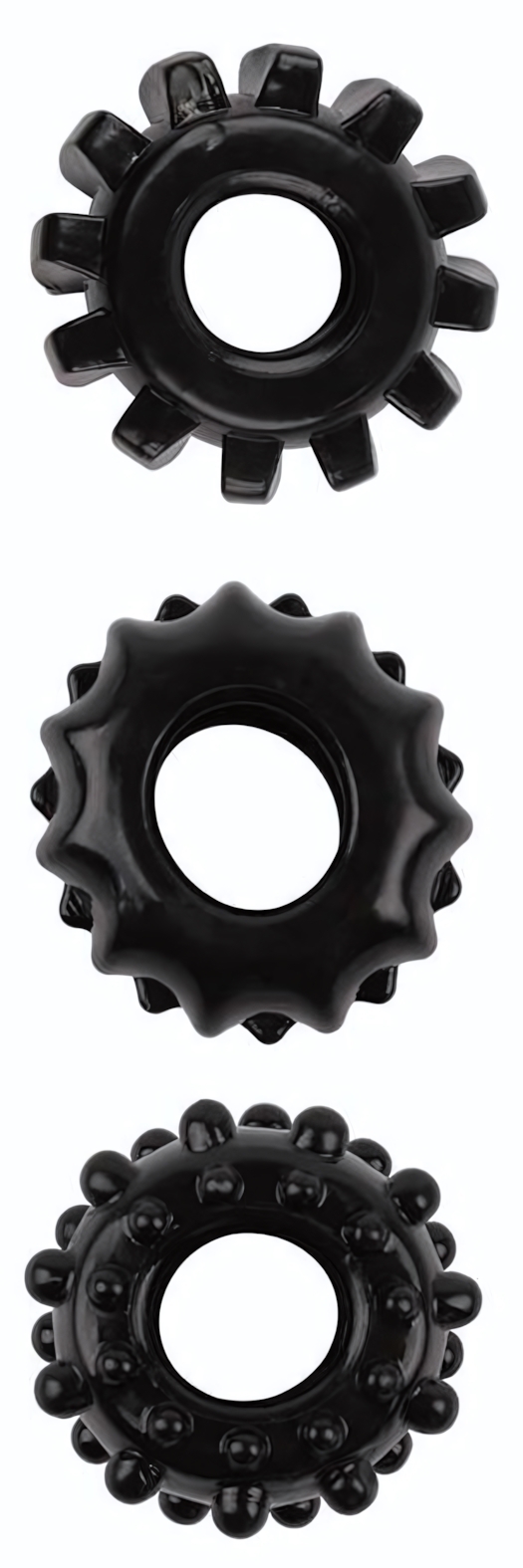 Эрекционные кольца Dream Toys, набор 3 шт., TPE, черный, разная текстура, диаметр 1.6 см