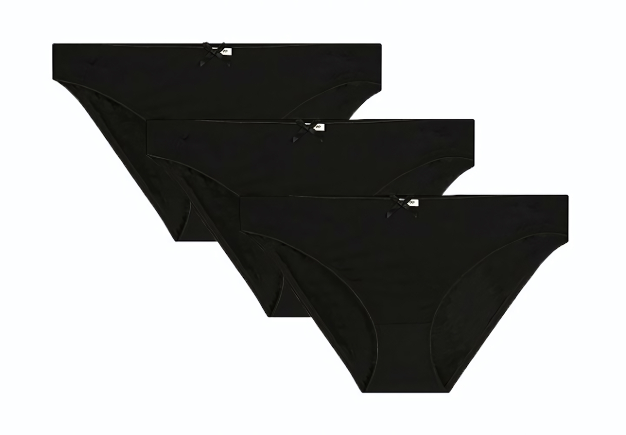 3 пары трусиков в комплекте позволяют создать базовый гардероб нижнего белья. Универсальный черный цвет сочетается с любым типом одежды – от обтягивающих платьев до классических брюк.