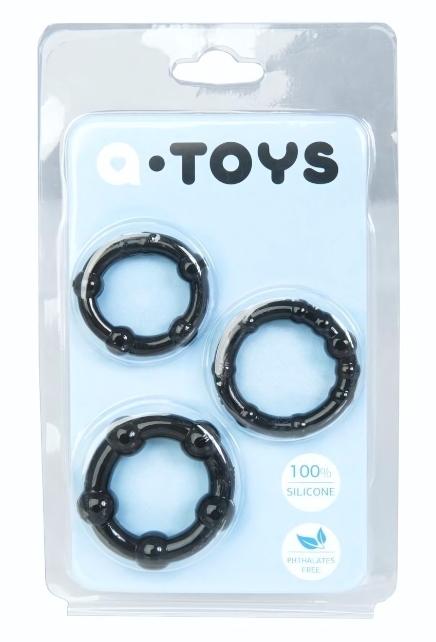 Набор из 3 эрекционных колец A-toys, диаметр 2-3.2см, черный силикон