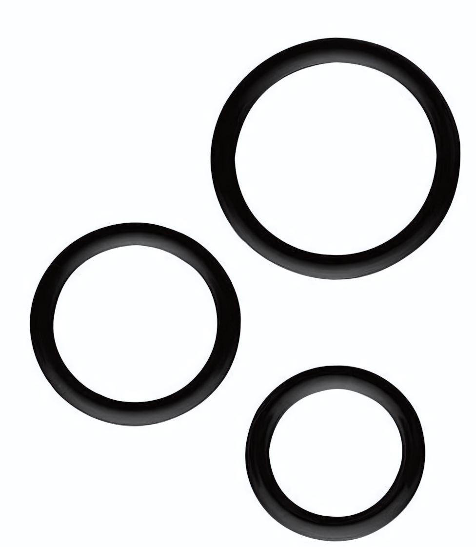 Набор эрекционных колец из силикона, 3 шт, черные, диаметры 3.2/4.2/5 см, комфорт и регулируемая плотность