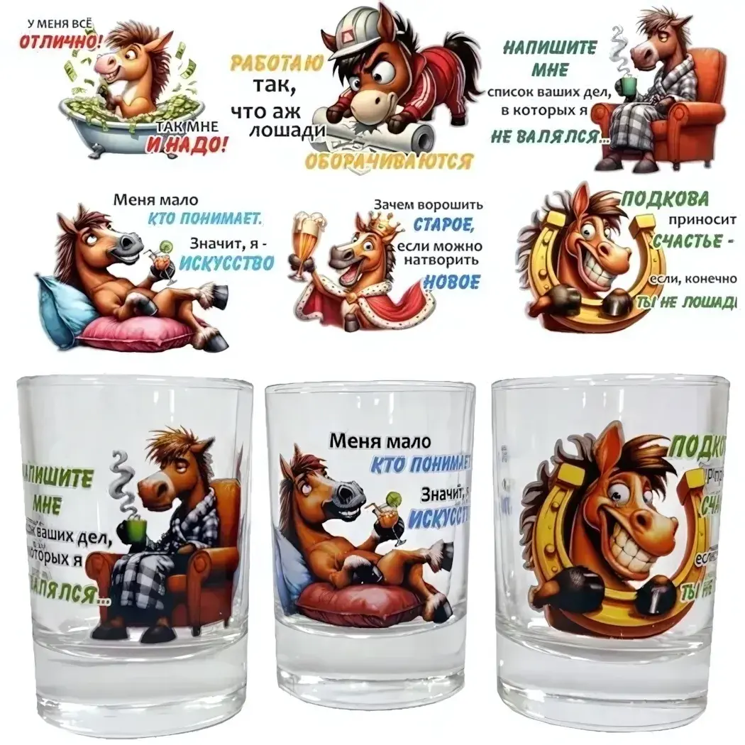 Три стеклянные стопки объёмом 50 мл с оригинальными иллюстрациями «Приколы года» превращают любой праздничный стол в атмосферу лёгкого юмора и тепла. Каждый элемент создан, чтобы вызвать улыбку и стать центральным элементом подарка.