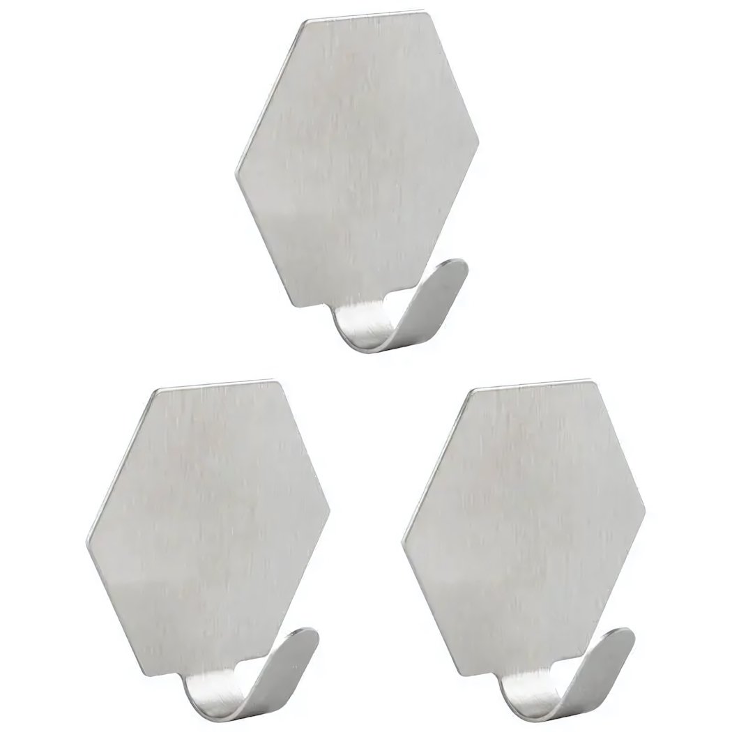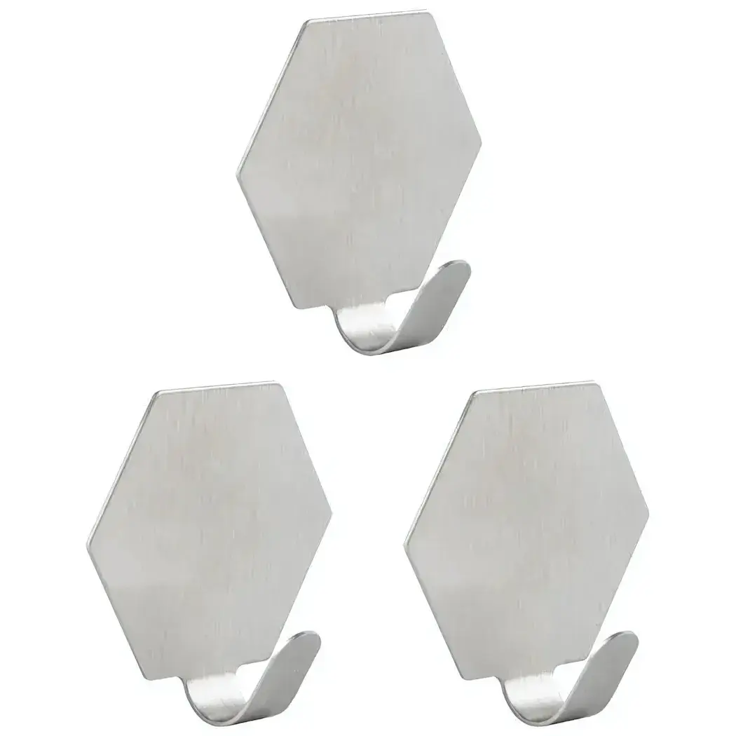 Набор из 3 крючков для надёжного крепления, шестиугольные, самоклеющиеся, нержавеющая сталь