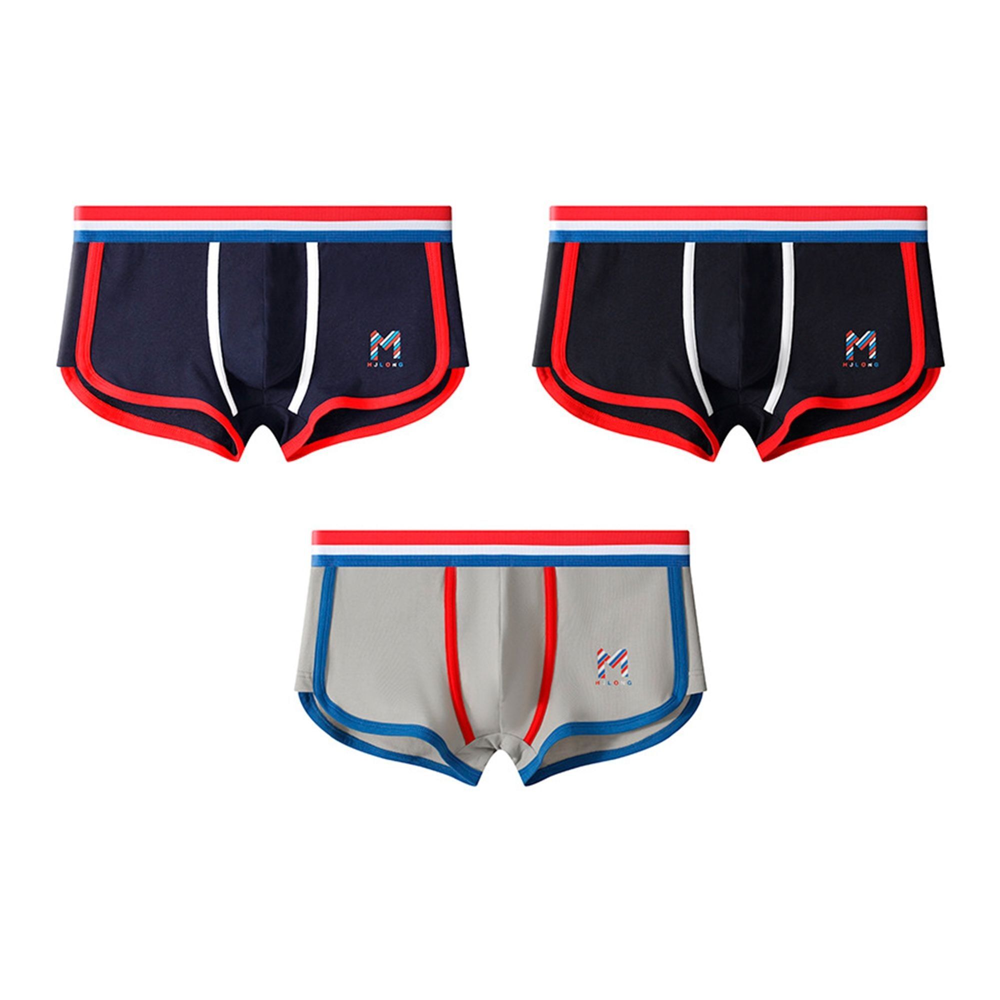 - Стильный дизайн: В набор входят трусы в разных цветах (тёмно-синий и светло-серый) с яркими акцентами — контрастными полосами на поясе и окантовкой. Это позволяет комбинировать их с разной одеждой.